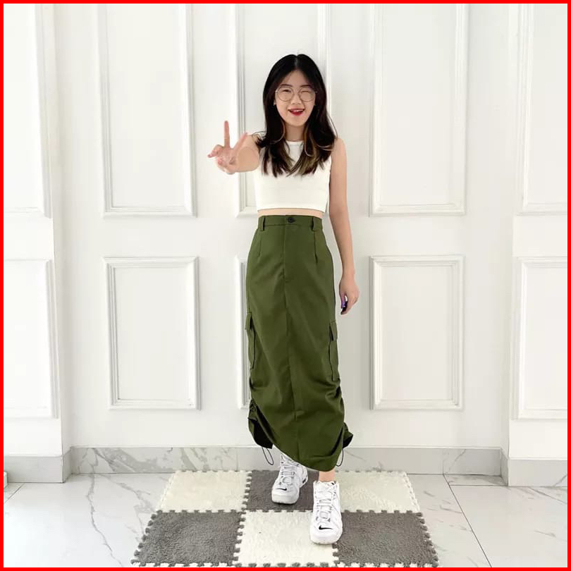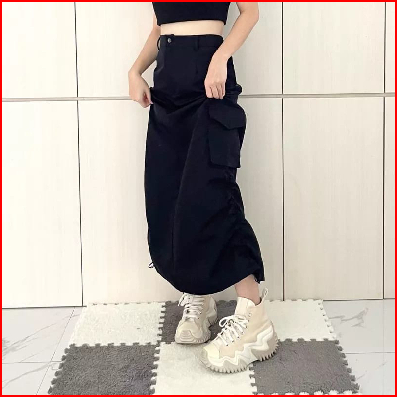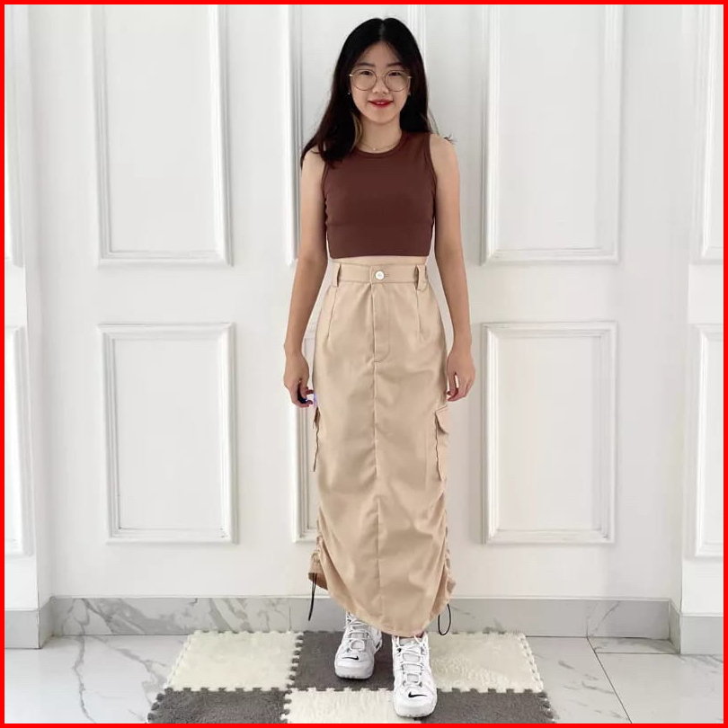 Lulu Rok Cargo Serut Wanita Cargo Skirt Korean Style