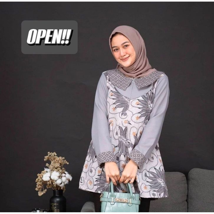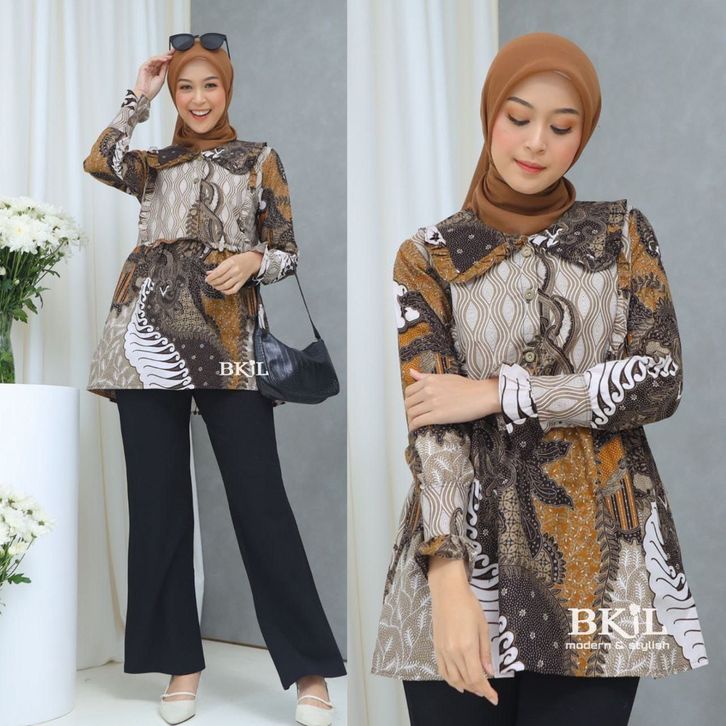 Batik Cewek ASJ SA HRB026 Kenongo Kemeja Tosca Pendek Bahan Full Katun Berkualitas Premium Stylish