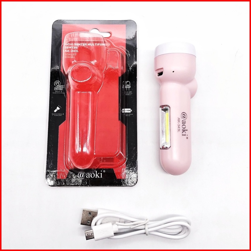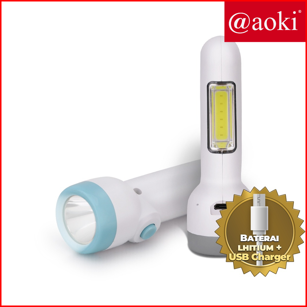 Aoki Senter Tangan Mulftifungsi Usb Charger Baterai Lhitium Praktis Tahan Hingga 4jam Led Cob