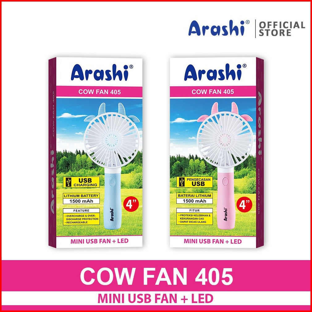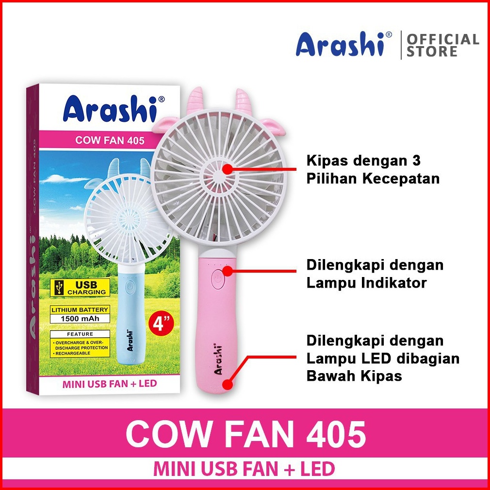 Arashi Kipas Angin Mini Cow Fan 405n 3 Kecepeatan Handheld Portable