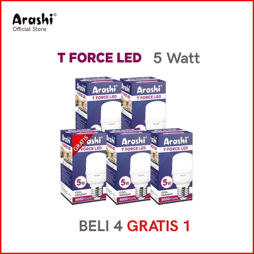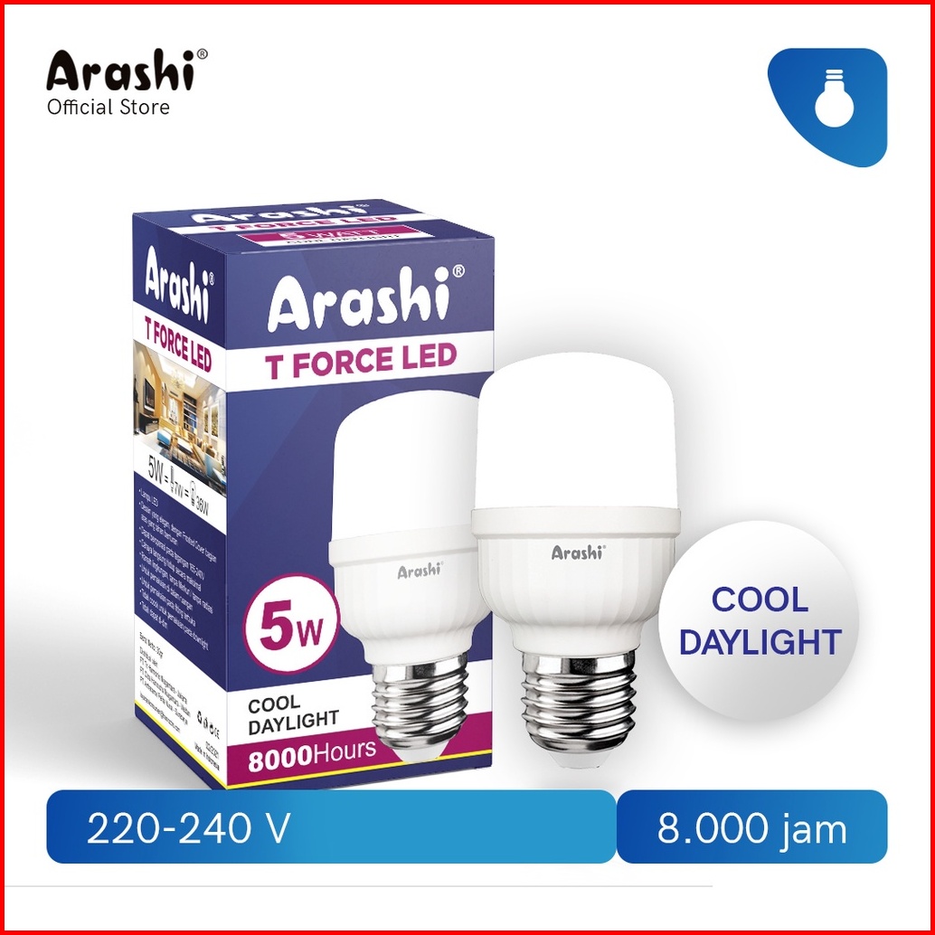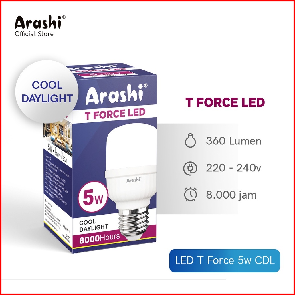 Arashi Lampu Led T Force Led 5 Watt Cdl Paket 5pcs - Putih