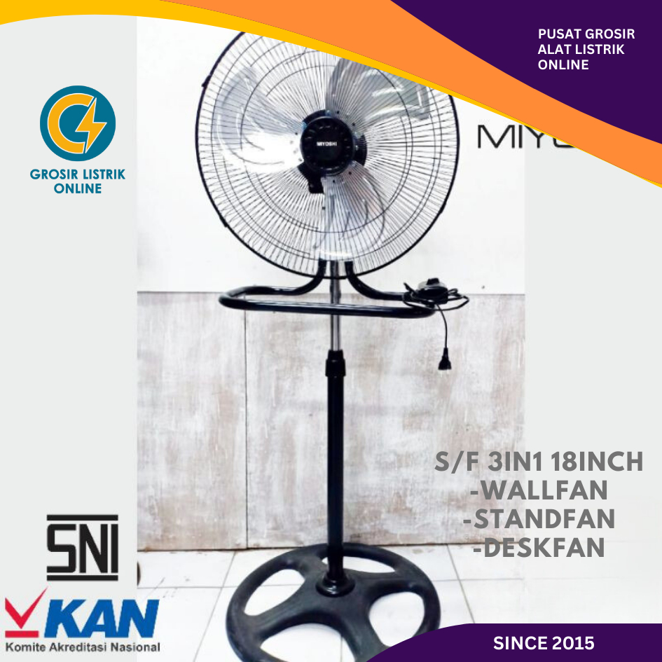 KIPAS ANGIN TORNADO BERDIRI MEJA DINDING 3IN1 3 IN 1 BESI 18 INCH 18INCH 18" MIYOSHI BESI INDUSTRIAL MURAH