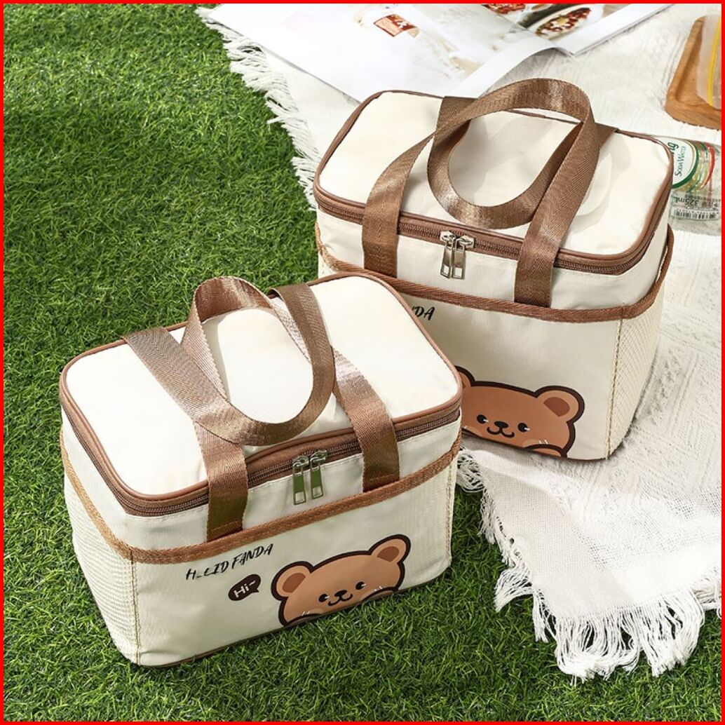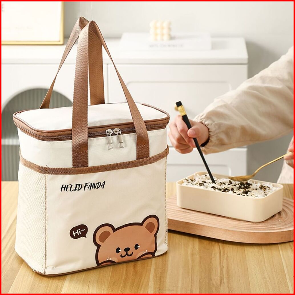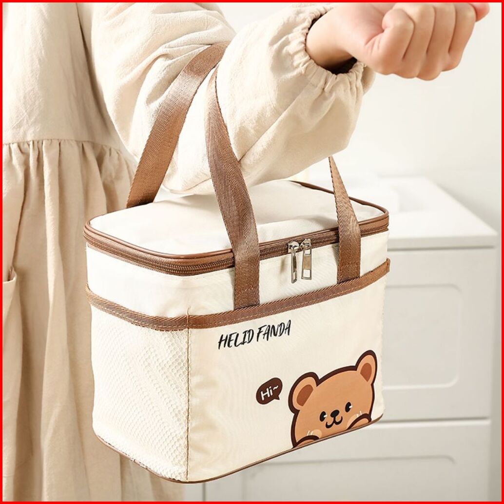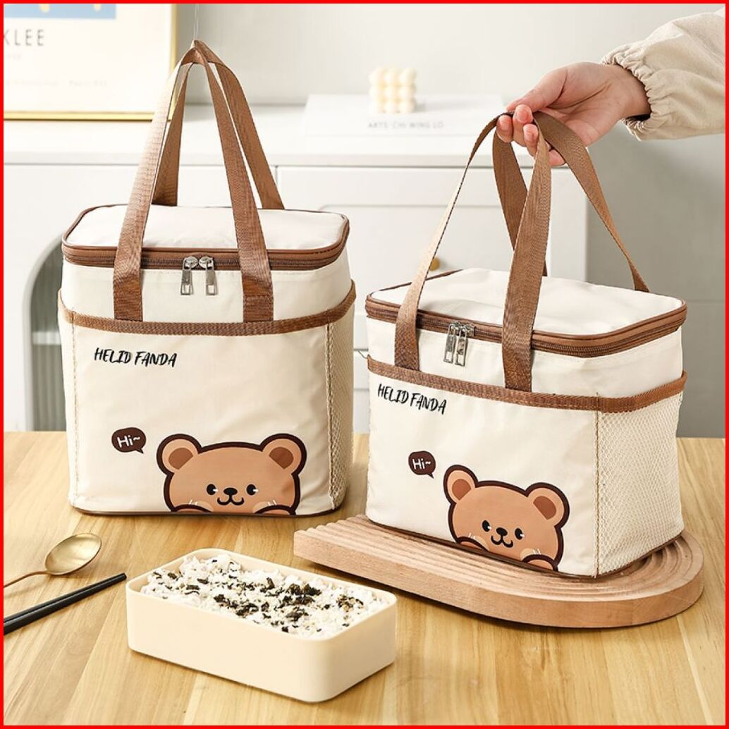 99khome Tas Bekal Anak Tempat Makan Tas Foil Minuman Dingin Tas Piknik Serbaguna Cream H933