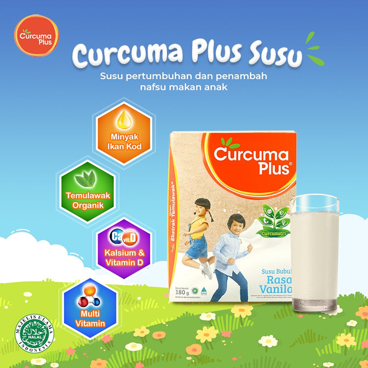 Curcuma Plus Susu Penambah Nafsu Makan Anak susu Bubuk Vanilla Penggemuk Badan Anak 180gr 1 box