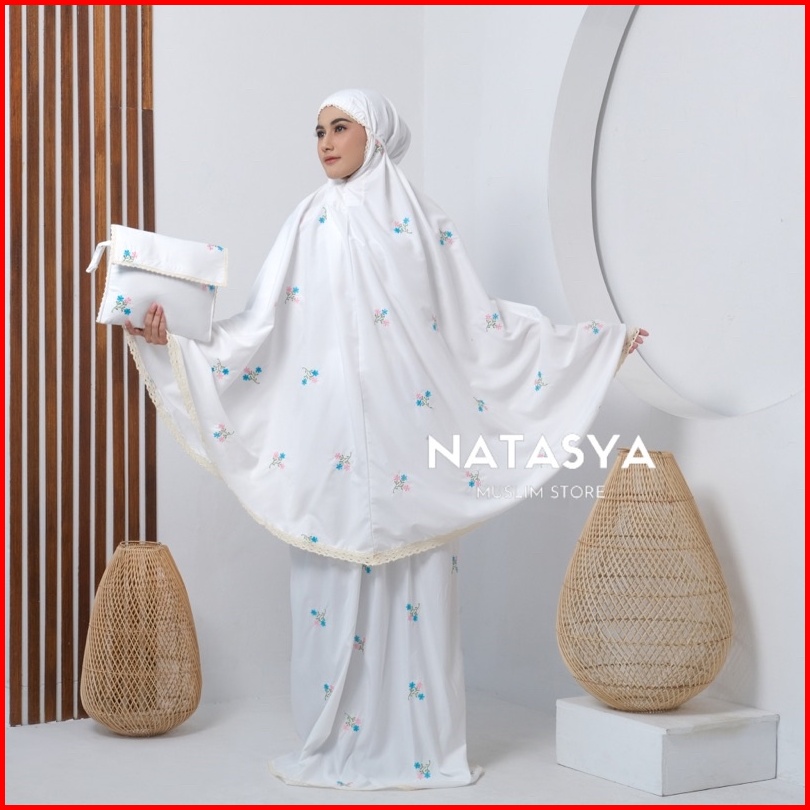 Mukena Dewasa Full Katun Bordir Bunga Melati Travelling