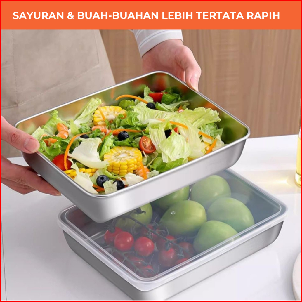 Sunland Food Box Isi 5pcs - Food Container - Tempat Menyimpan Makanan - Wadah Sayuran Stainless Multifungsi - Bisa Untuk