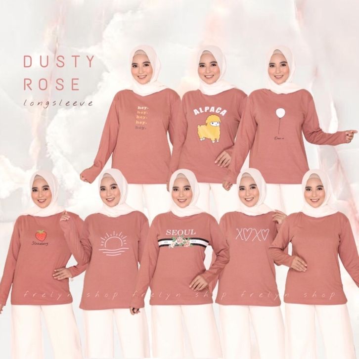 Kaos Dusty Rose Oversi Baju Tshirt Tumblr Tee Pink Korean Korea Alpaca Style Pendek Cewek Seoul Strawberry Balon XX