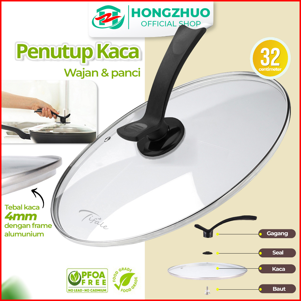 Hongzhuo Tutup Wajan Penggorengan Tutup Panci Bahan Kaca Dan Tebal Ukuran 32cm