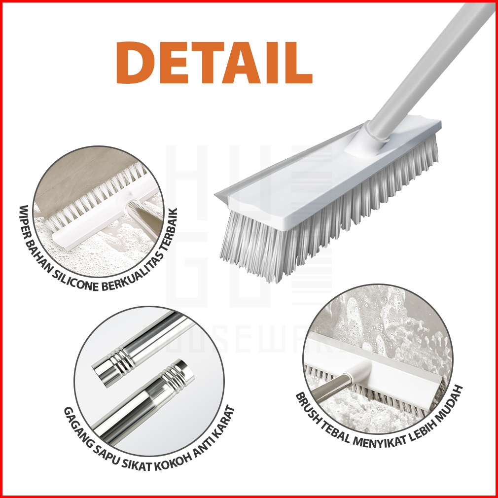 Hugo Sikat Pembersih Lantai Toilet Kamar Mandi 2 In 1 Praktis Serbaguna Serokan Air Gagang Panjang Warna Putih
