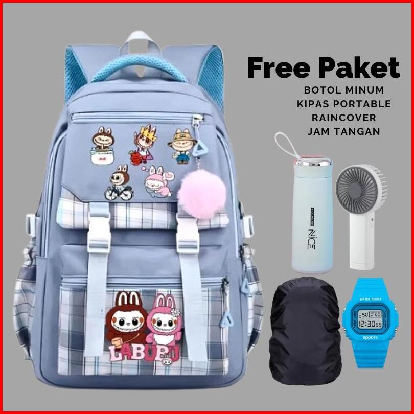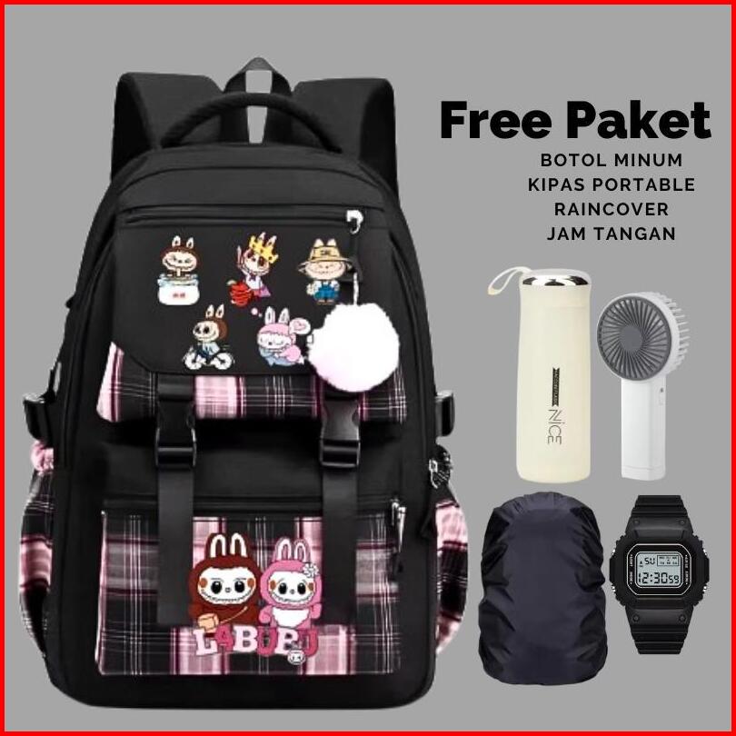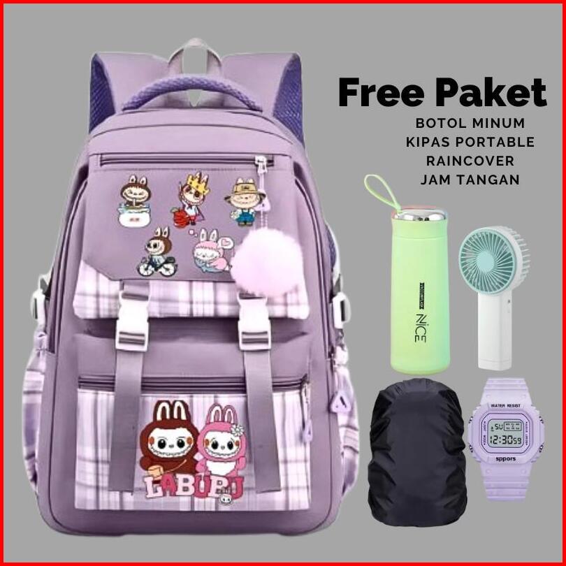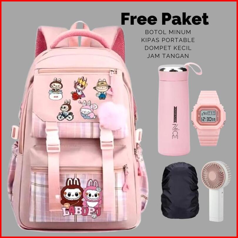 Tas Ransel Anak Perempuan Labubu Bags Tas Sekolah Anak Sd Free Botol Minum Jam Impor Tas Ransel Sekolah Anak Perempuan D