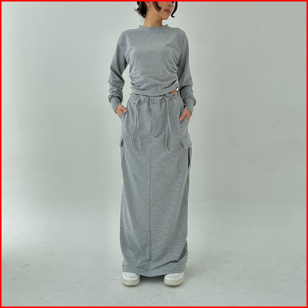 Neptune Set Set Long Sleeve Wanita Setelan Rok Panjang Highwaist Skirt Oversized Korean Outer Shirt Korean Skirt