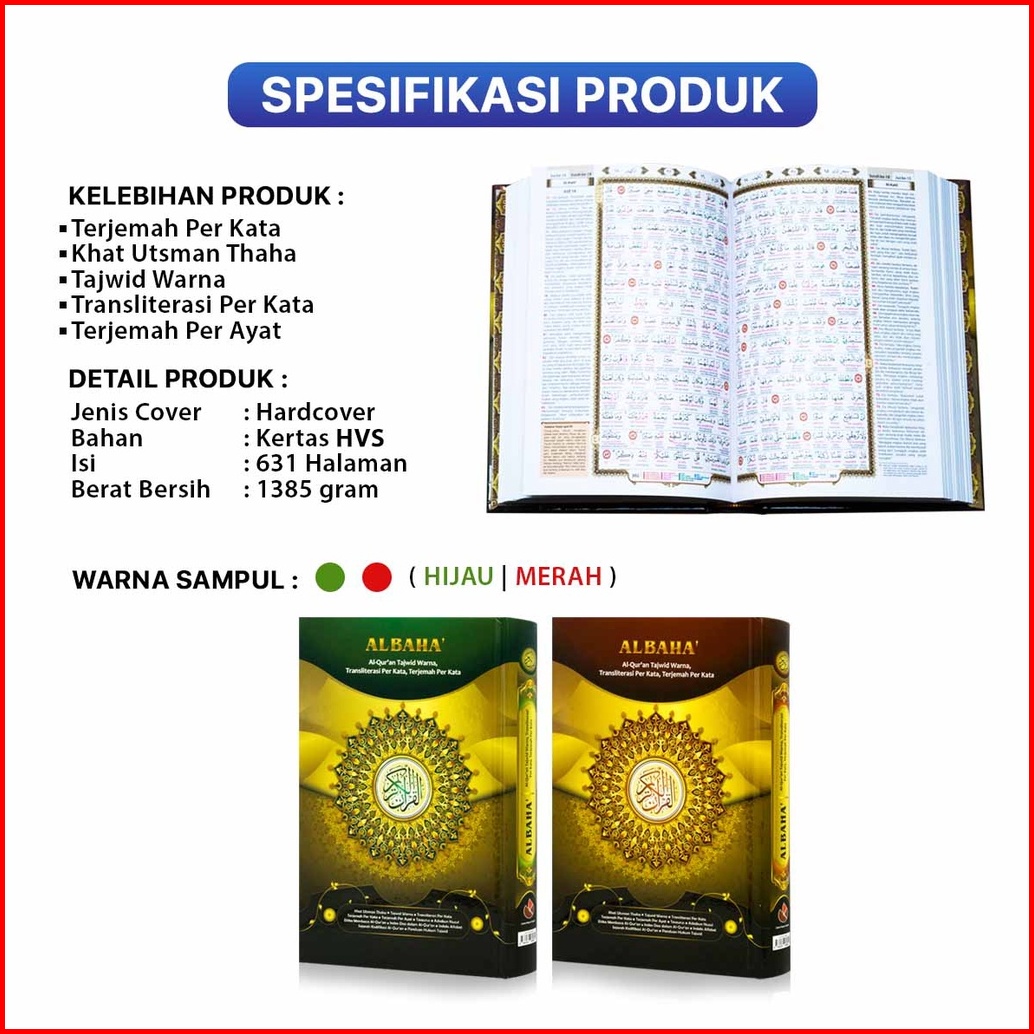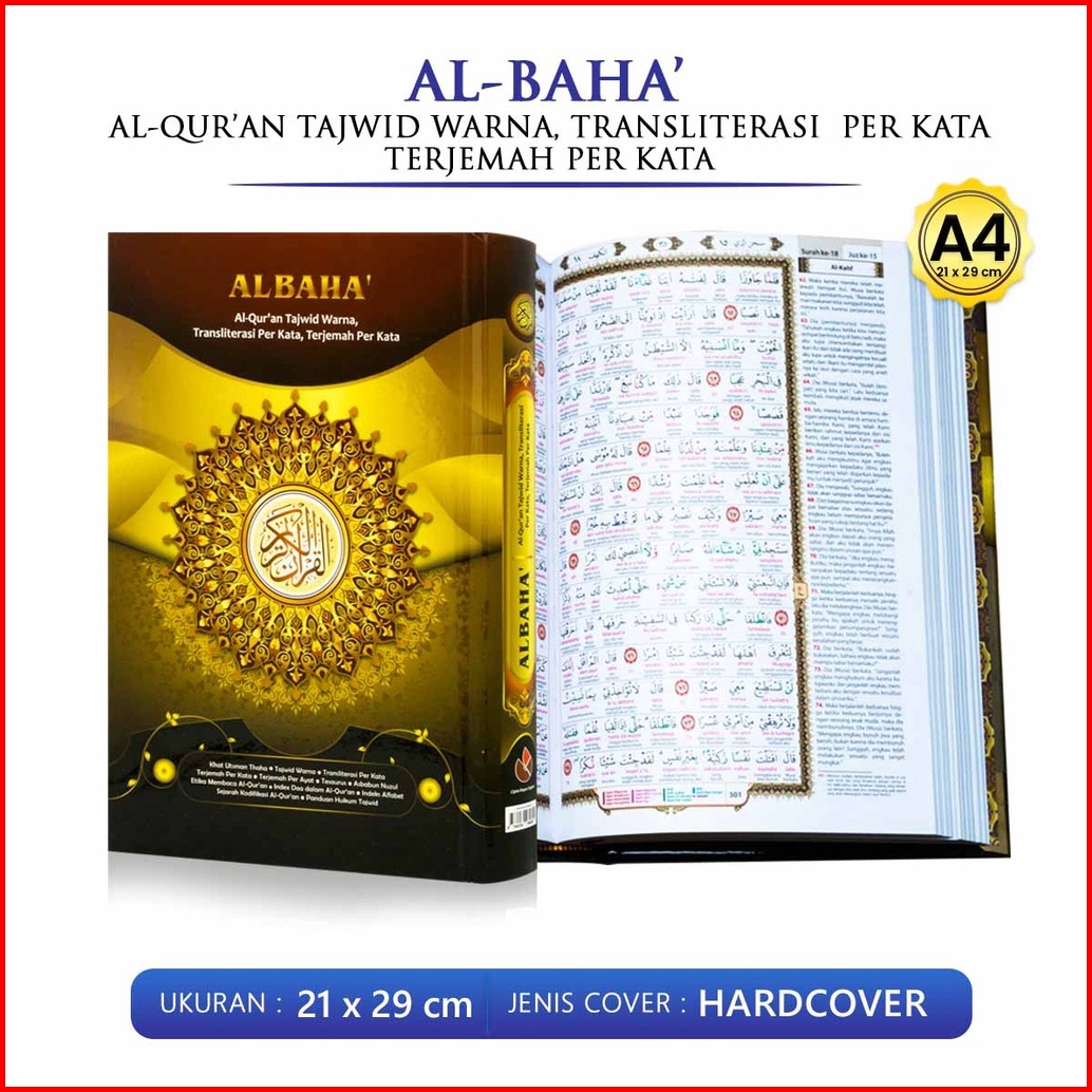 Al Quran Besar A4 21 X 29 Al Baha Alquran Tajwid Warna Transliterasi Per Kata Dan Terjemah Perkata