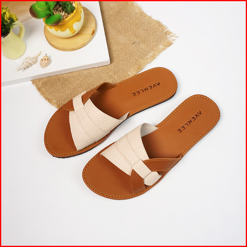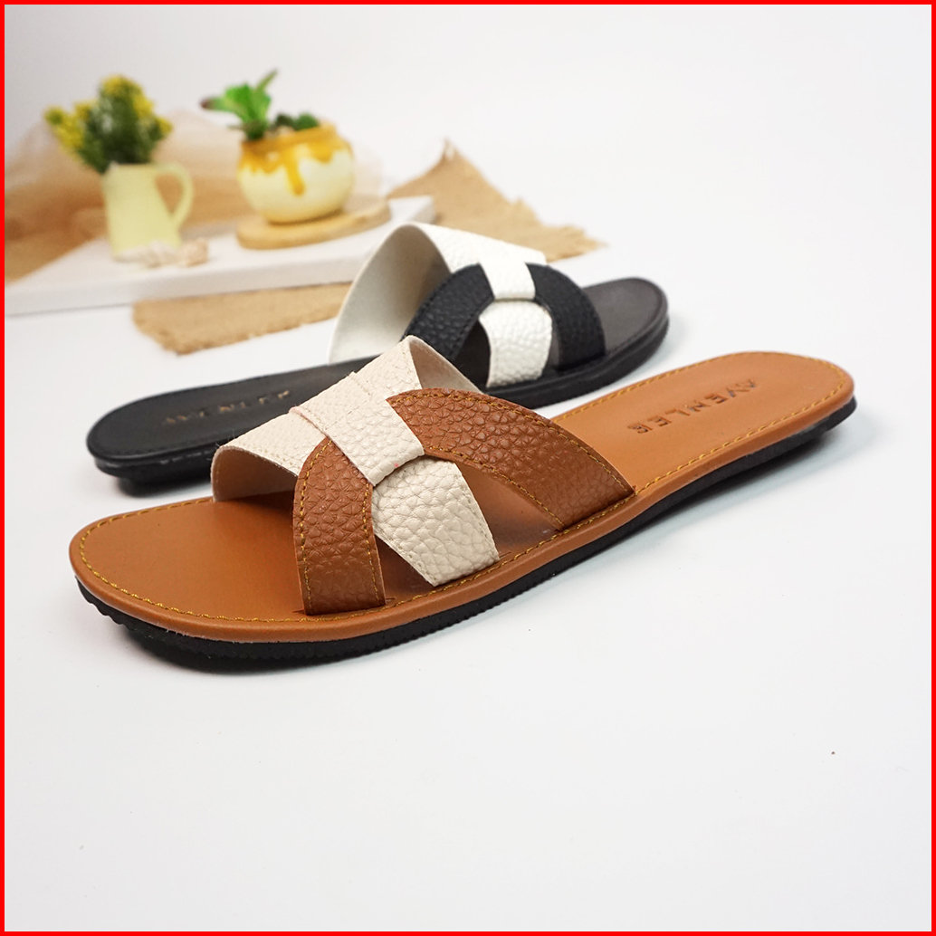 Avenlee Rhea - Sandal Wanita Teplek Sol Karet Non Slip Model Casual Kulit Sintetis Motif Kulit Jeruk