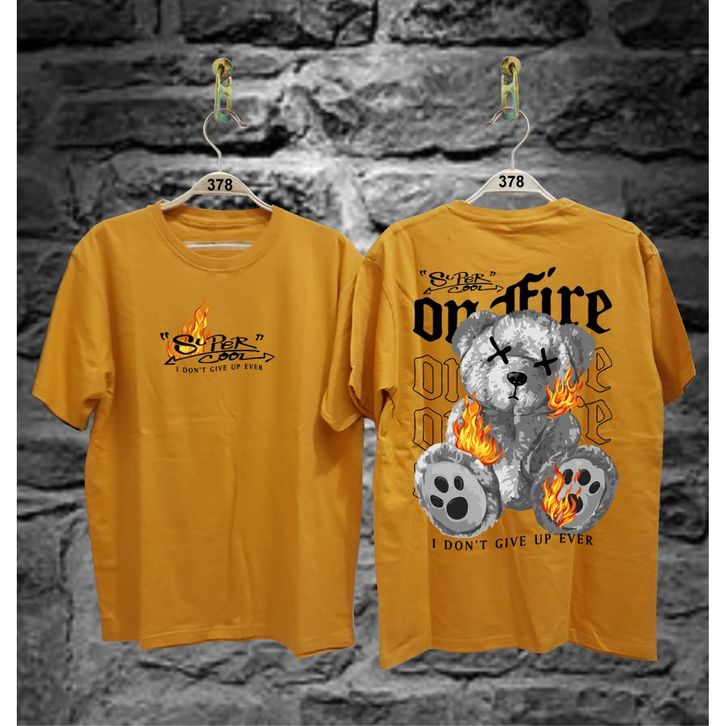 Kaos Tshirt Cowok Terbaru Samurai Jepang Boneka Bear On Fire Warna Toska Distro Lengan Pendek Motif Sablon Bergambar