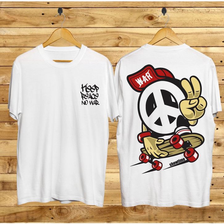Kaos Tshirt Cowok Terbaru Samurai Jepang Keep Peace Warna Putih Distro Lengan Pendek Motif Sablon Bergambar Keren