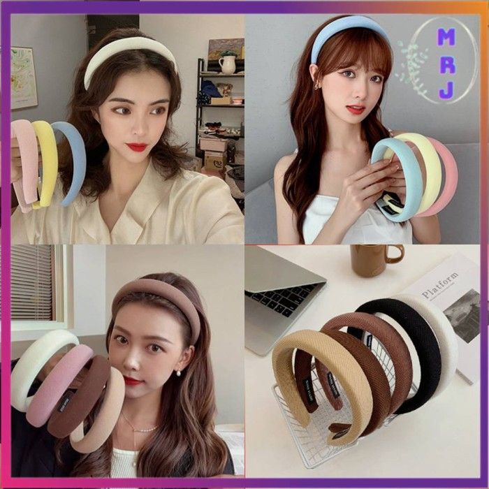Grosir MRJ Bando Kain Tebal Wanita Korea Headband Cloud Polos Lebar Korean - OFF WHITE Elegan