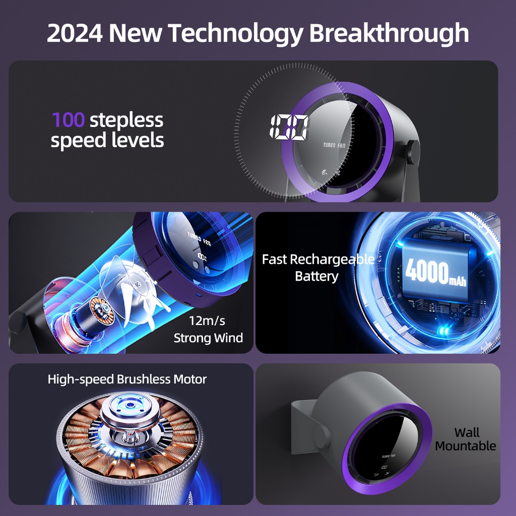(FLASH SALE) GOOJODOQ kipas Angin bisu Strong Wind 100 Gear Wind Speed kipas dinding Digital Display Adjustable Turbo