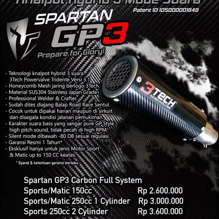 Knalpot Knalpot Spartan GP3 Motor 250cc 2cylinder Carbon Fullsistem
