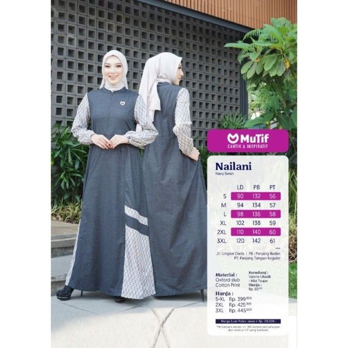 baju sarimbit MUTIF Gamis NAILANI Koko RAUF NAVY SWAN Dress Sarimbit Keluarga Muslim Panjang Terbaru Katun S-3XL - Ibu