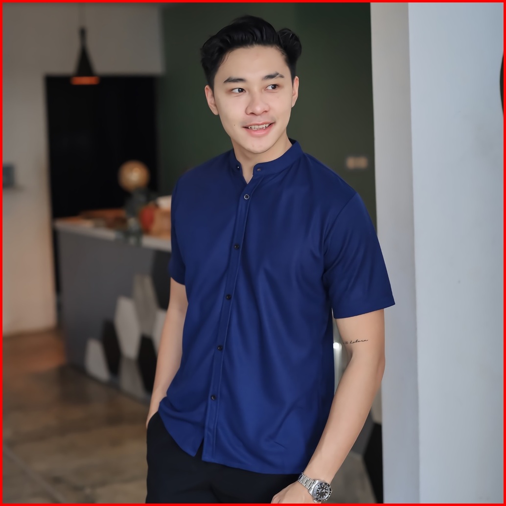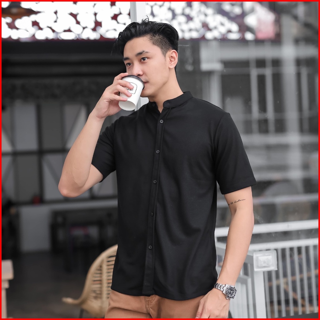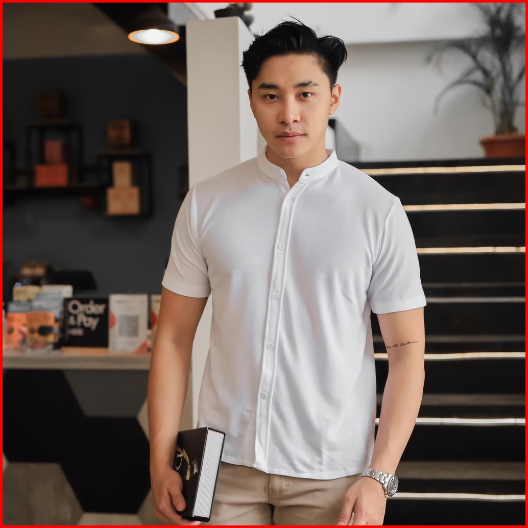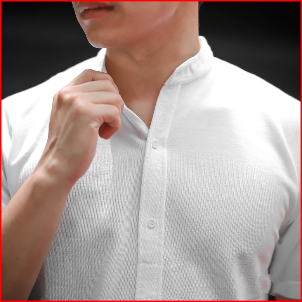 Kemeja Slimfit Pria Polos Casual Lengan Pendek Bahan Pique Premium Warna Putih