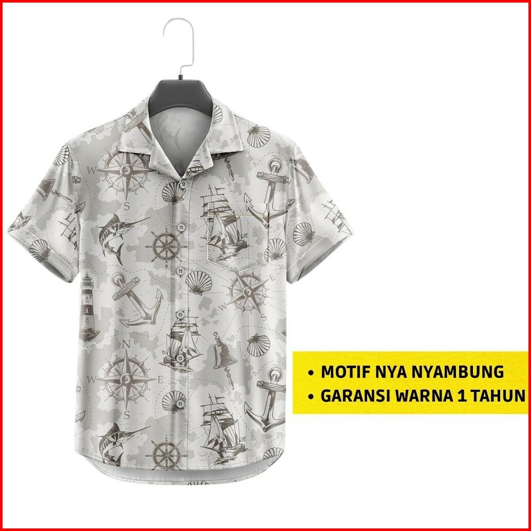 Dowear Baju Kemeja Motif Kekinian Cowok Cewek Bali Pantai Surfing Hawai Jumbo Vintage Grey Ship 130