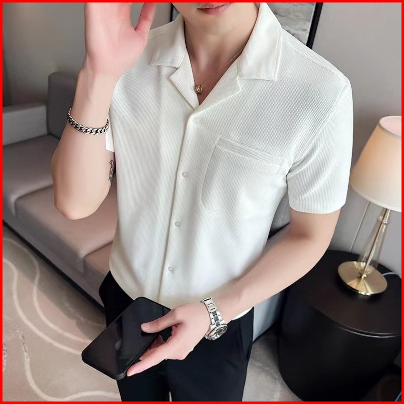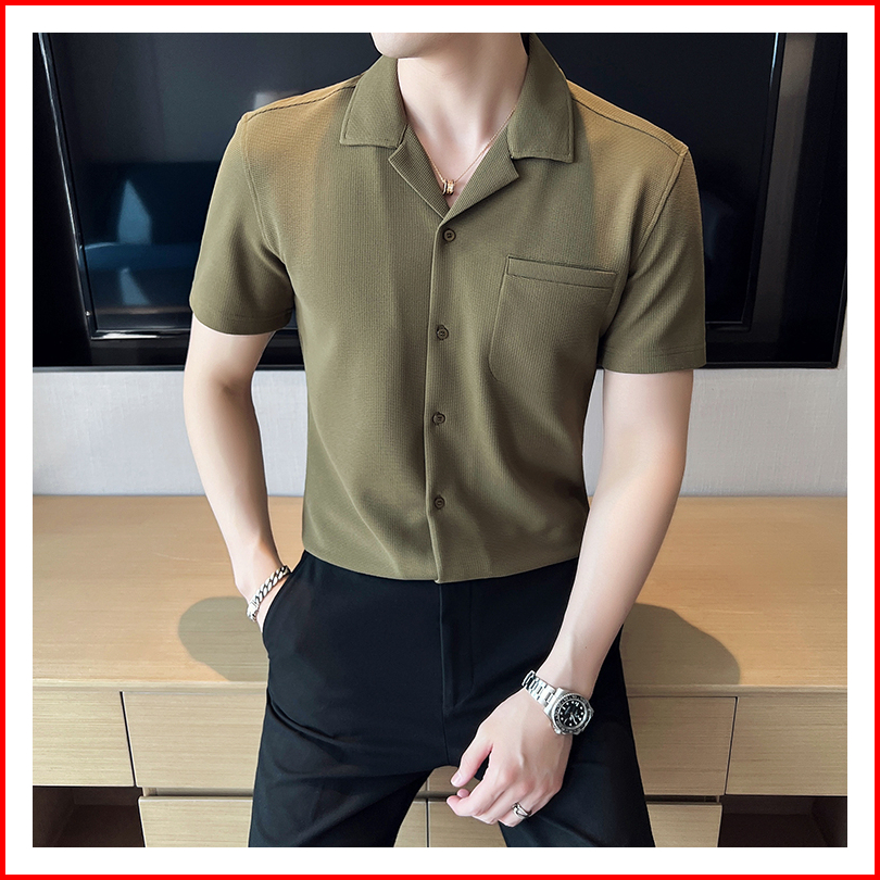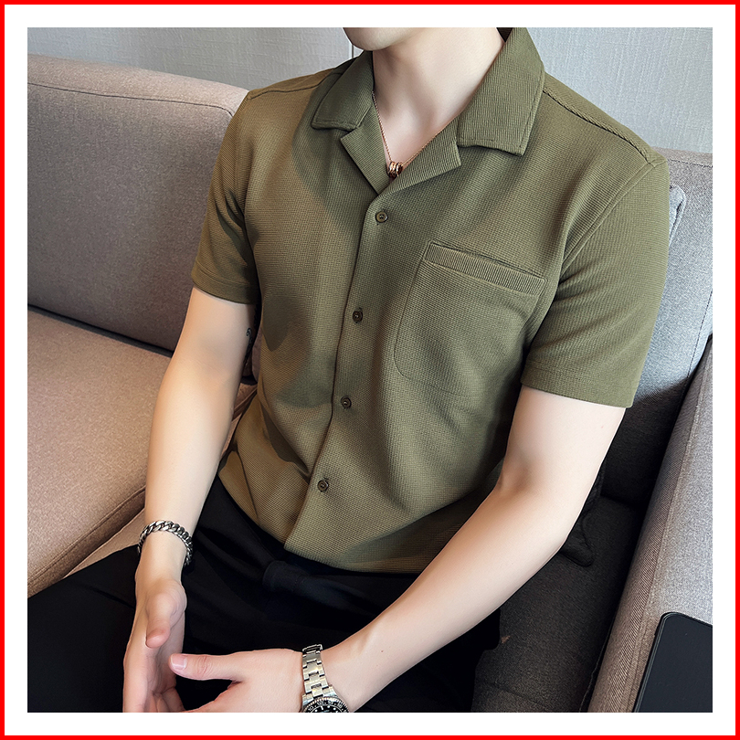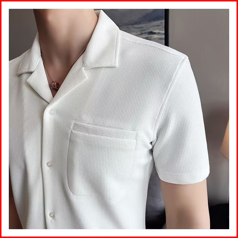 Kemeja Casual Pria Polos Tekstur Waffle Kualitas Import Korean Style Lengan Pendek Kemeja Kantor