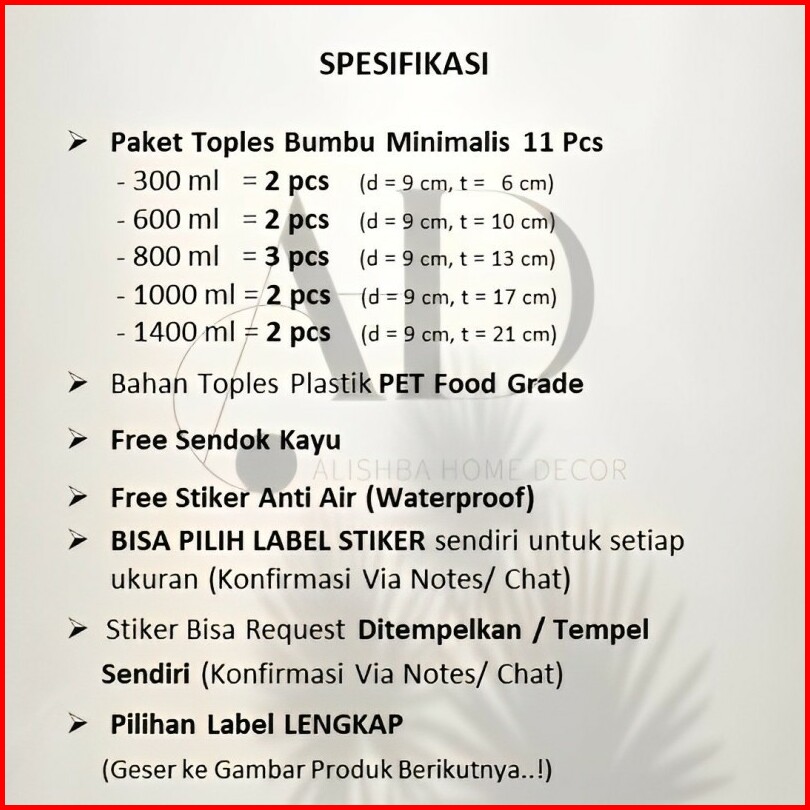 Toples Bumbu Dapur Tutup Putih Plastik 11 Pcs Paketan Model Minimalis