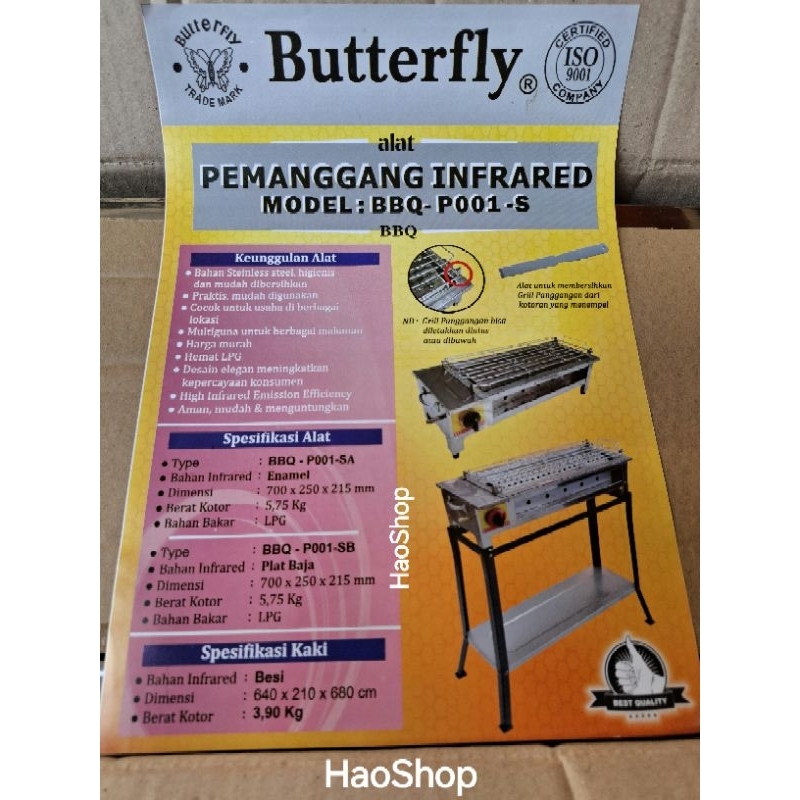 [PROMO] Kompor Panggangan Sate Sosis Ayam Ikan BBQ Grill Stainless Steel Gas Lpg Butterfly P001S