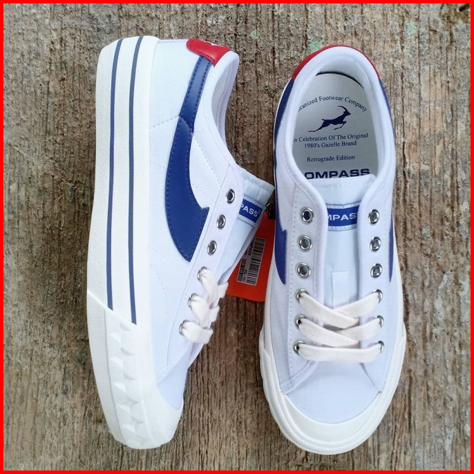 Promo 12.12 Sepatu Pria Sepatu Sneakers Sepatu Compass Retrograde Low Black White White Blue 100 Original