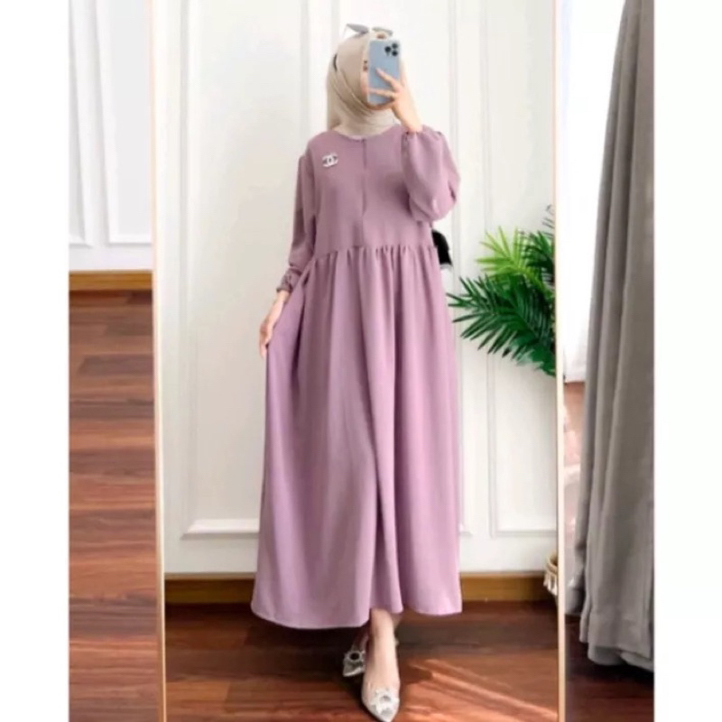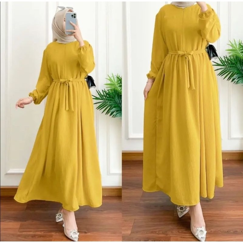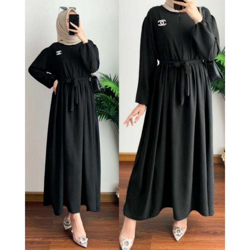 (Gratis Ongkir) Putih Hitam Bavina Midi Dress Bahan Crinkle