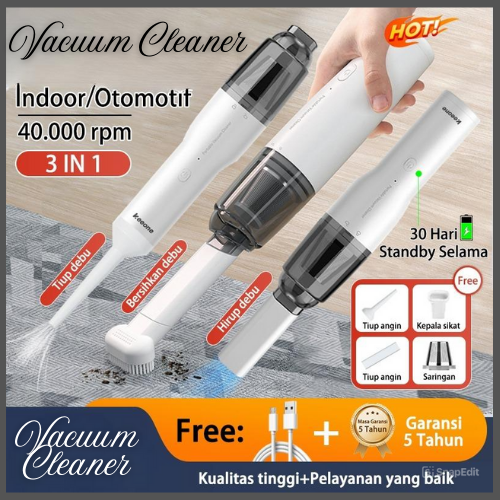 Vacuum Cleaner Vacum Penyedot Debu Modern 2024 Tanpa Kabel Portable Wireless Kasur Mobil Cordless Vakum 3In1 Best Seller