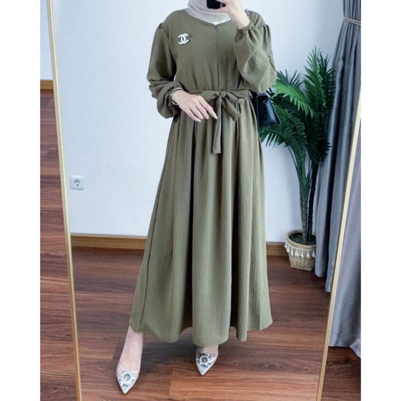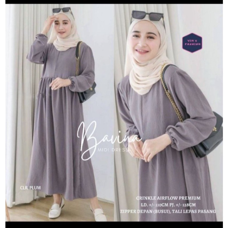 (Gratis Ongkir) Putih Hitam Bavina Midi Dress Bahan Crinkle