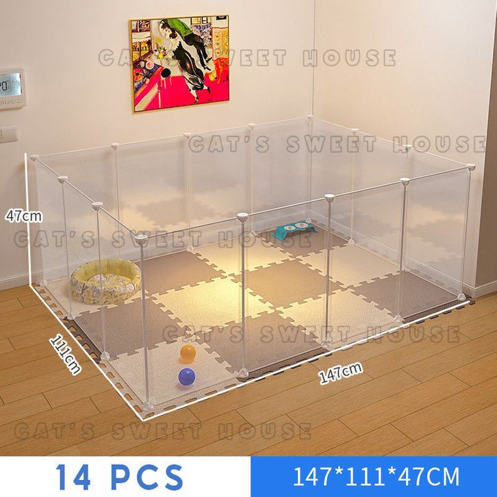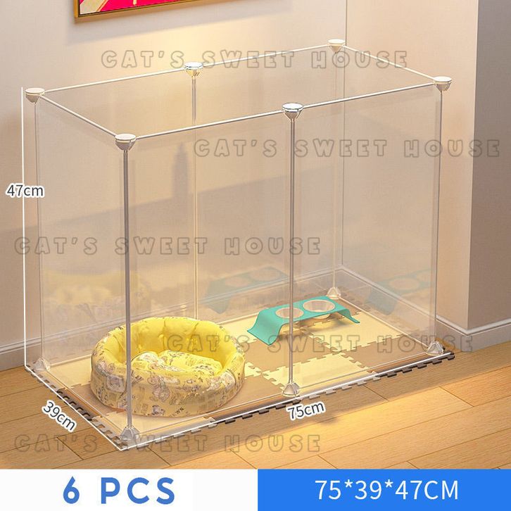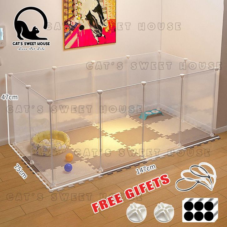 Kandang Kucing 1 Set Transparan Kandang Hamster Pagar Kucing Pembatas Tingkat Rumah Kucing