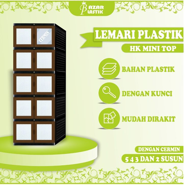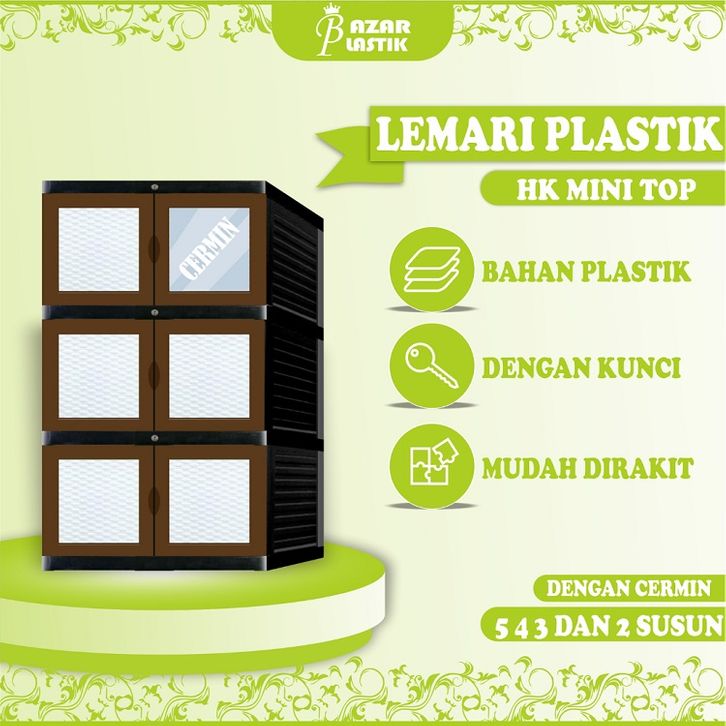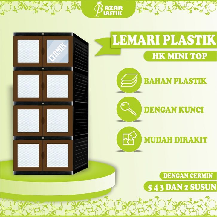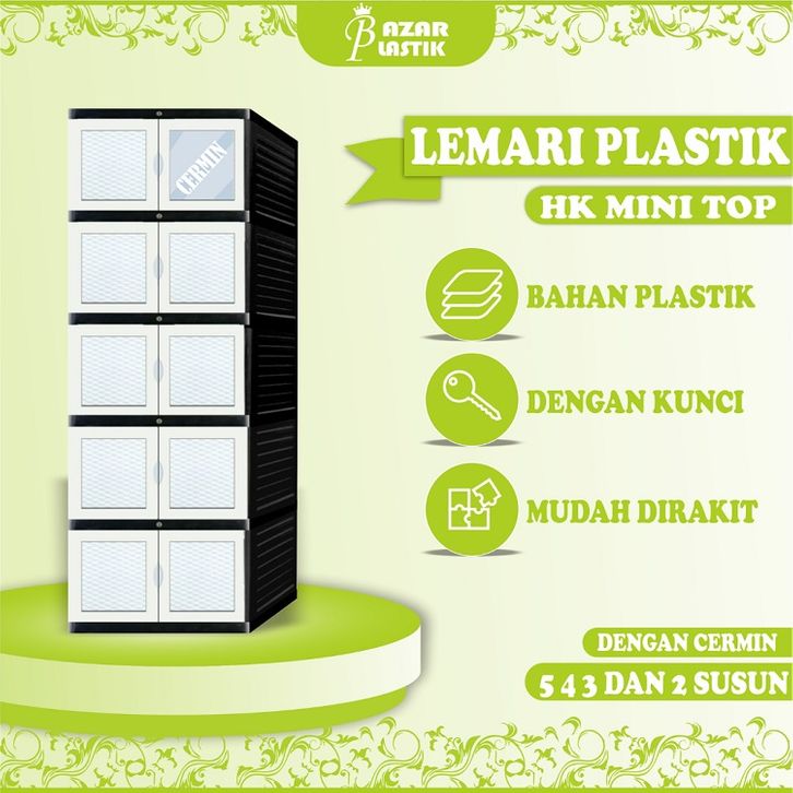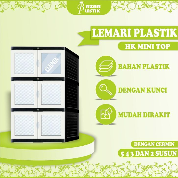 Lemari Baju Plastik Lemari Plastik Banyak Tingkat Lemari Pakaian Plastik 2 - 5 Susun FULL KUNCI ADA KACA