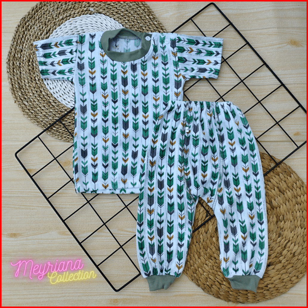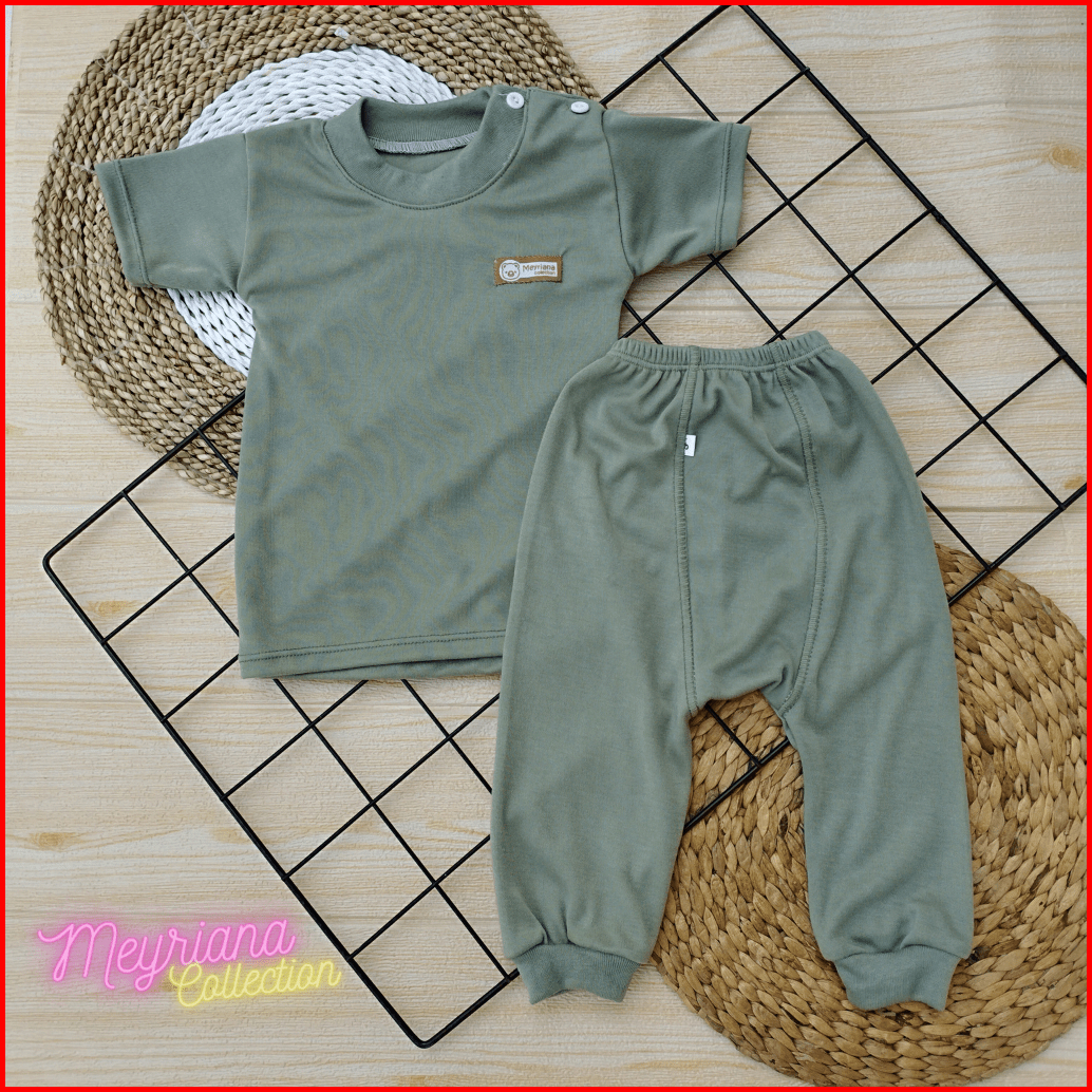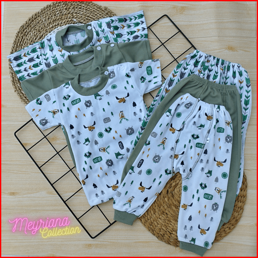 Promo Isi 6 Pcs Baju Bayi Lengan Pendek Celana Pempers Panjang Series Sage Usia 0-18 Bulan Meyriana Collection