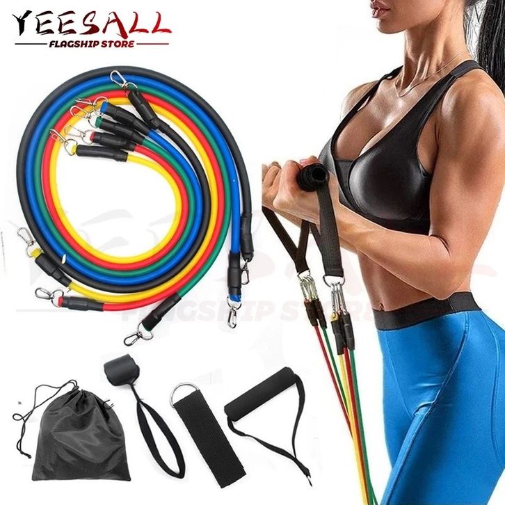 Resistance Bands 11 In 1 Set Tali Pembantu Fitness Gym Power Yoga Loop Stretching Pull Rope Loopband Tali Kebugaran