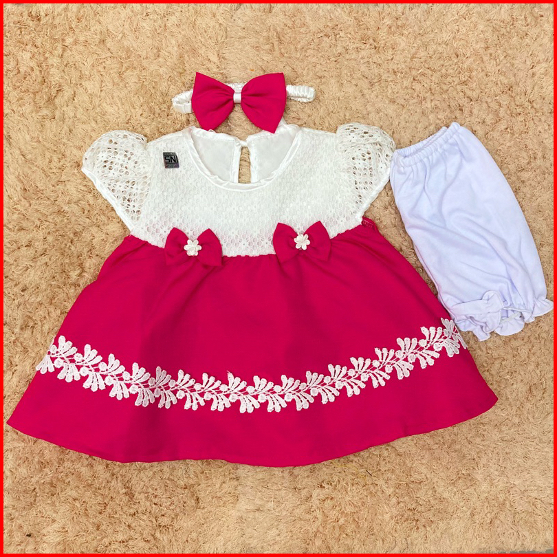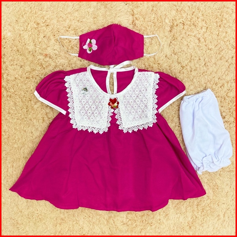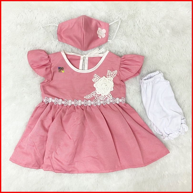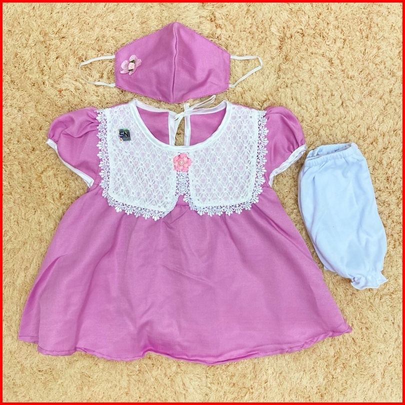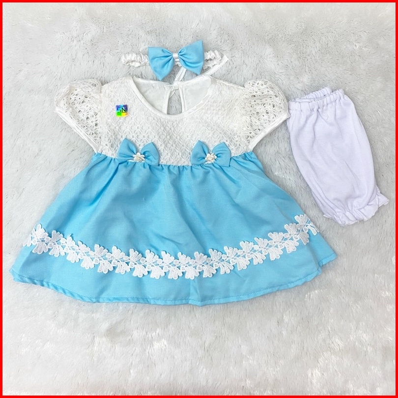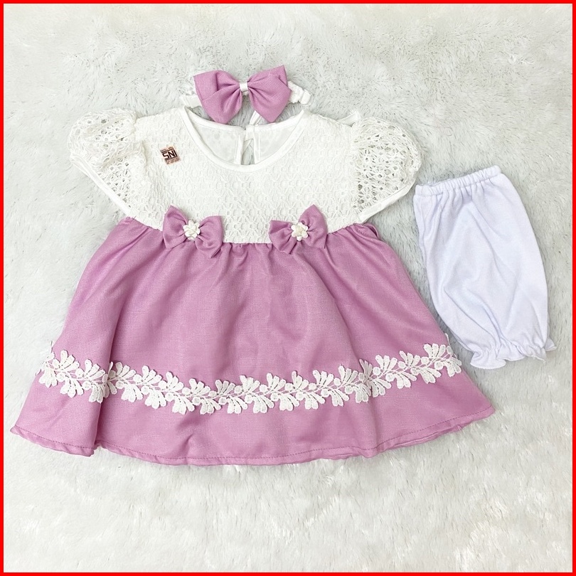Dress Baby Newborn Renda Bahan Polos 0-6 Bln