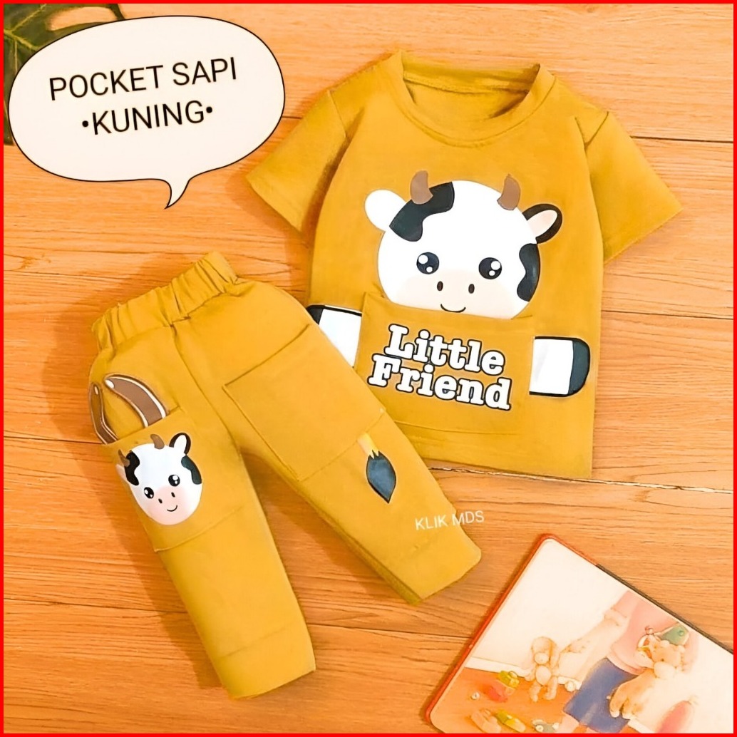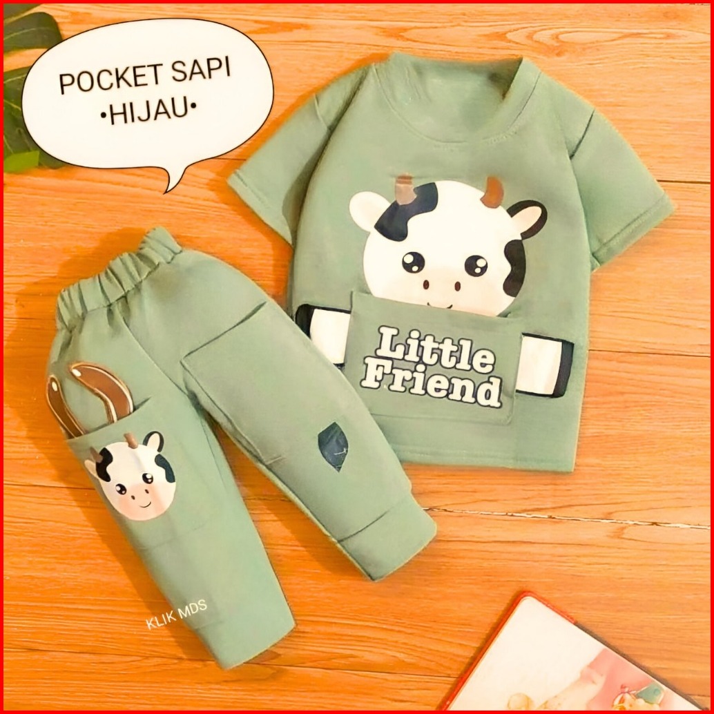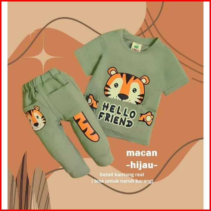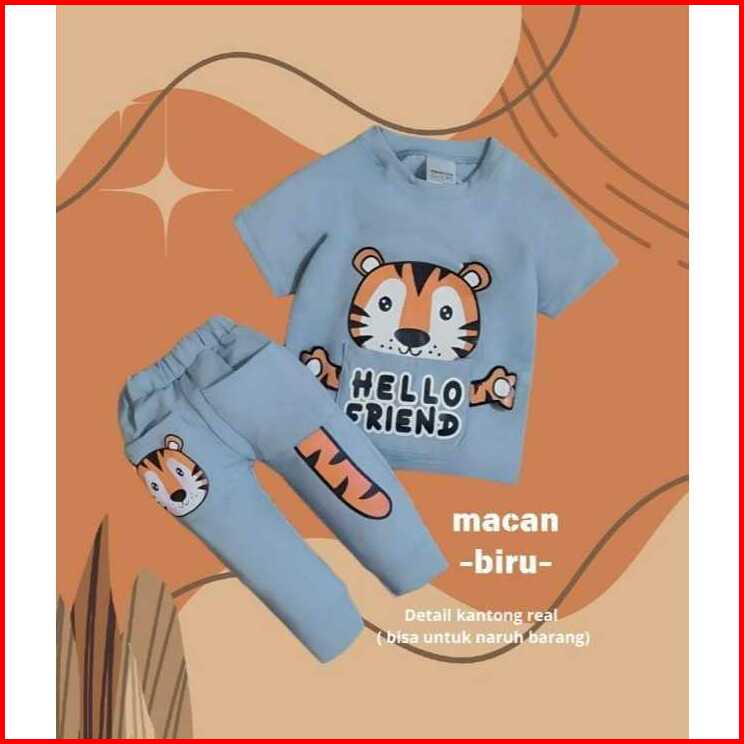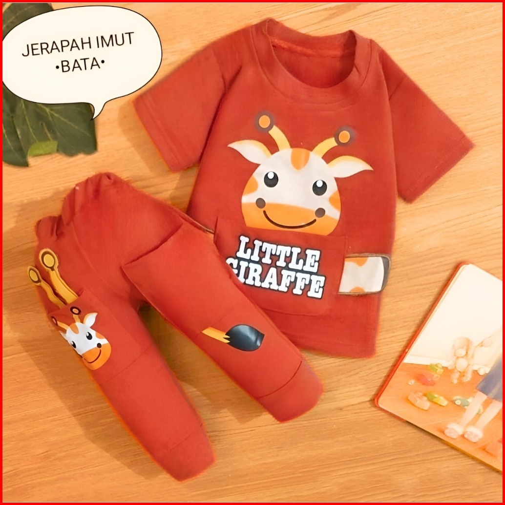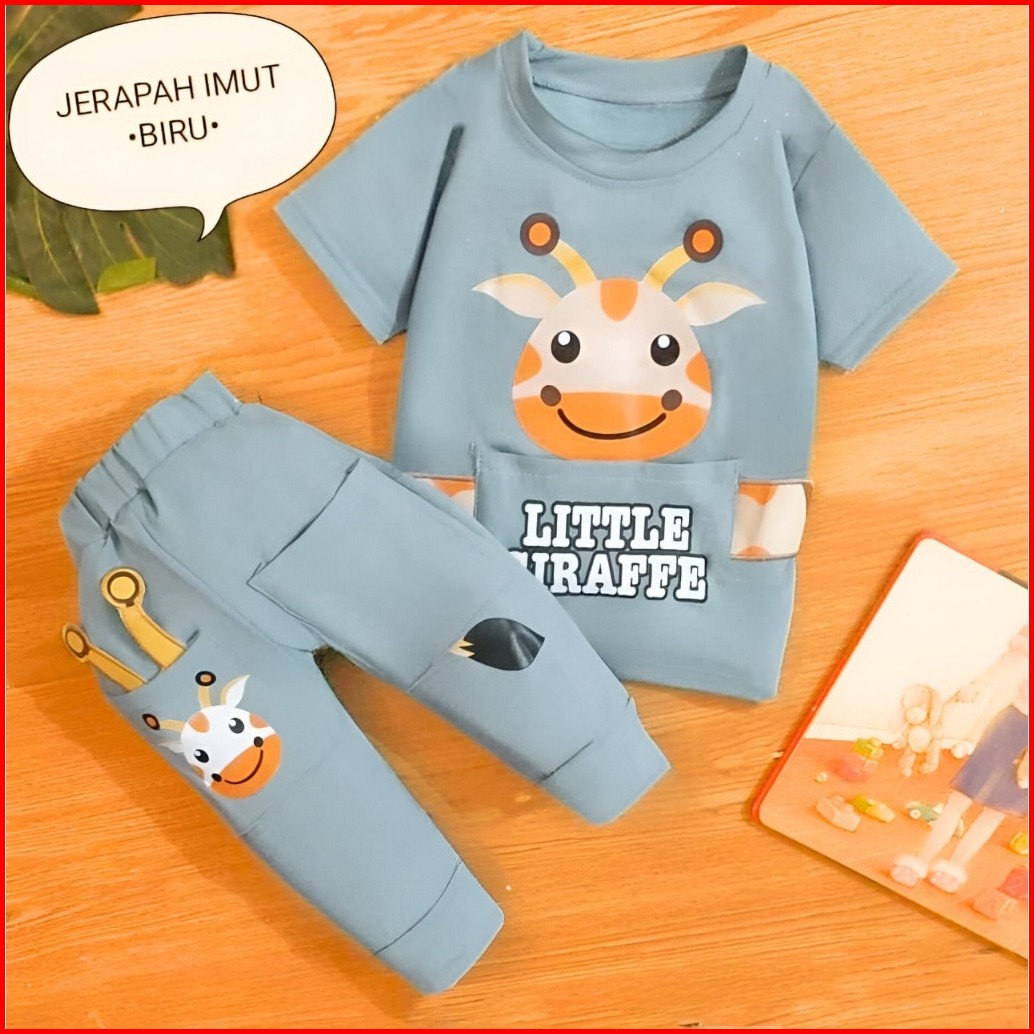 Setelan Anak Laki - Laki Baju Bayi Cowok Usia 3 Bulan - 3 Tahun Lengan Pendek Dan Celana Panjang Ada Kantong Motif Littl