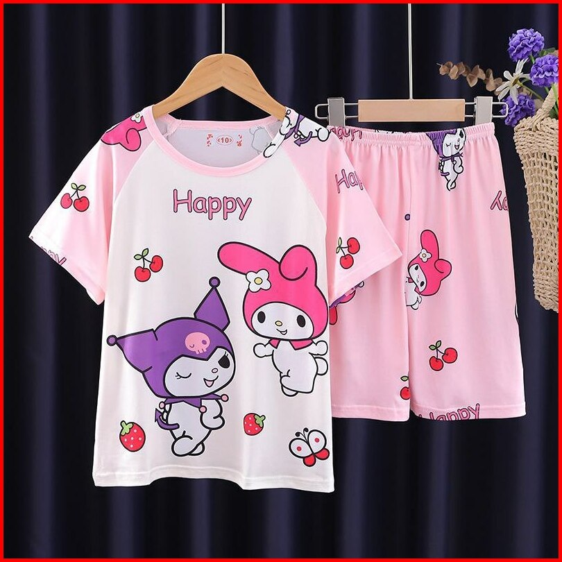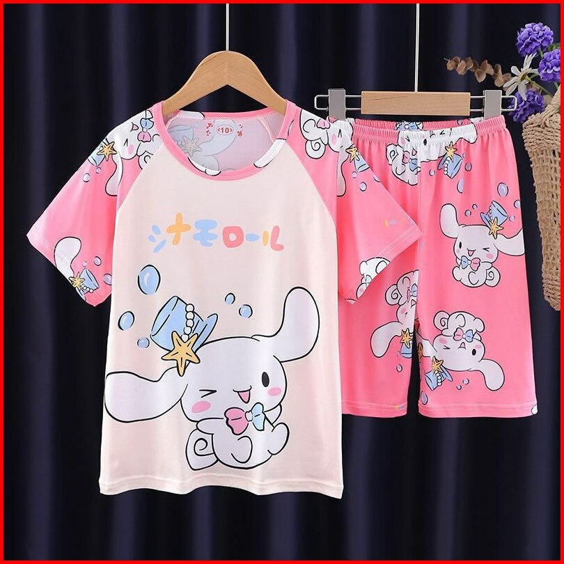 Sbb Setelan Piyama Baju Tidur Anak Perempuan Laki-laki Unisex Umur 4-12 Tahun Lengan Celana Pendek
