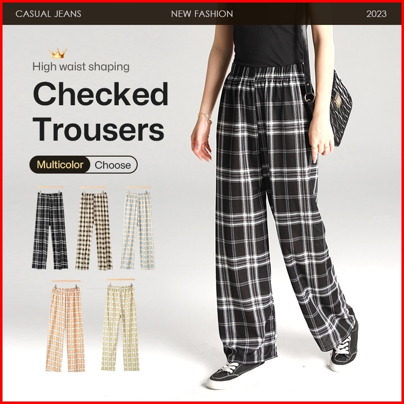 Celana Tartan Wanita Korean Style Celana Longgar Wanita Celana Wanita Terbaru Highwaist Celana