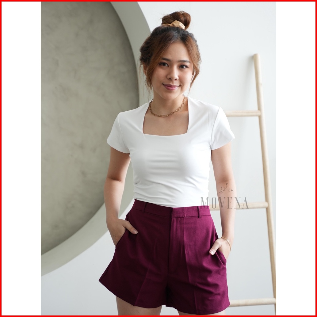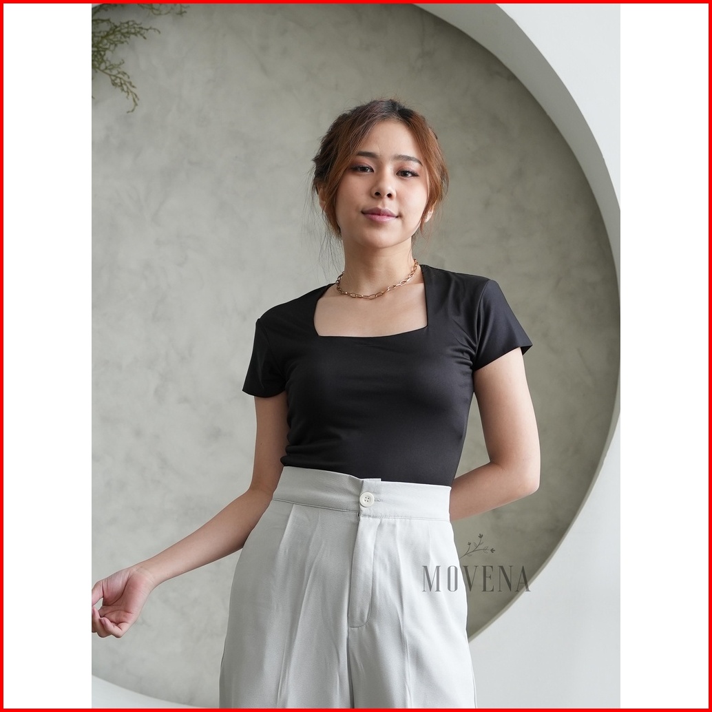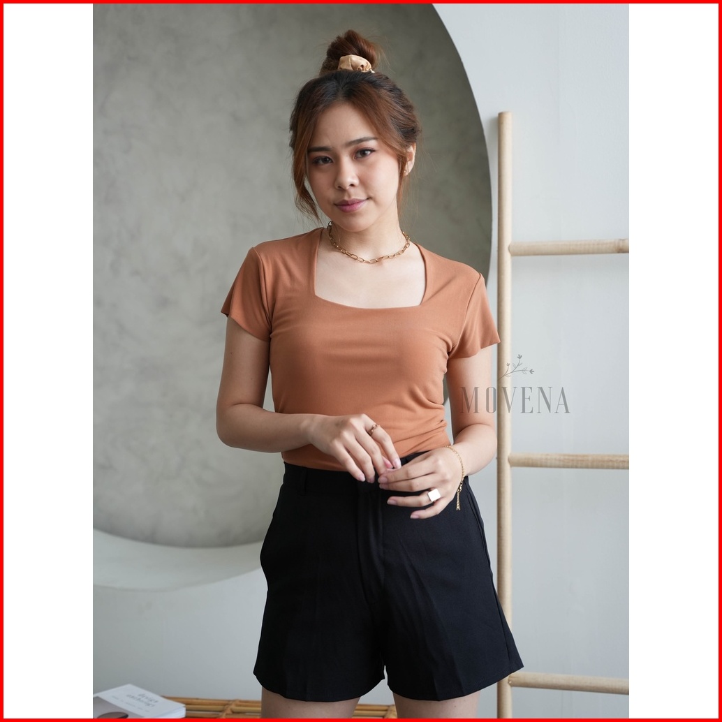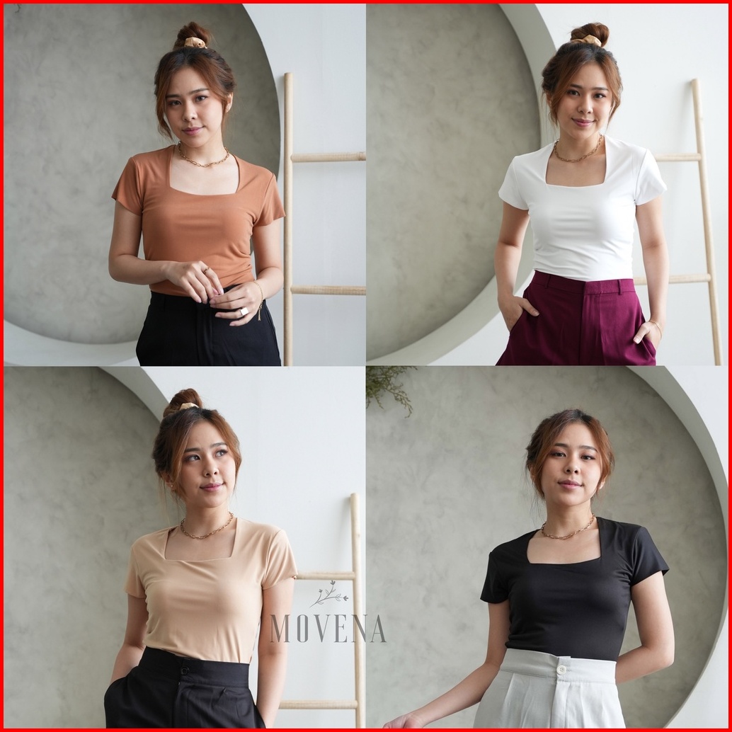 Kaos Wanita Alina Square Neck Top Sleeve Croptop Atasan Blouse Wanita Bahan Jersey Premium