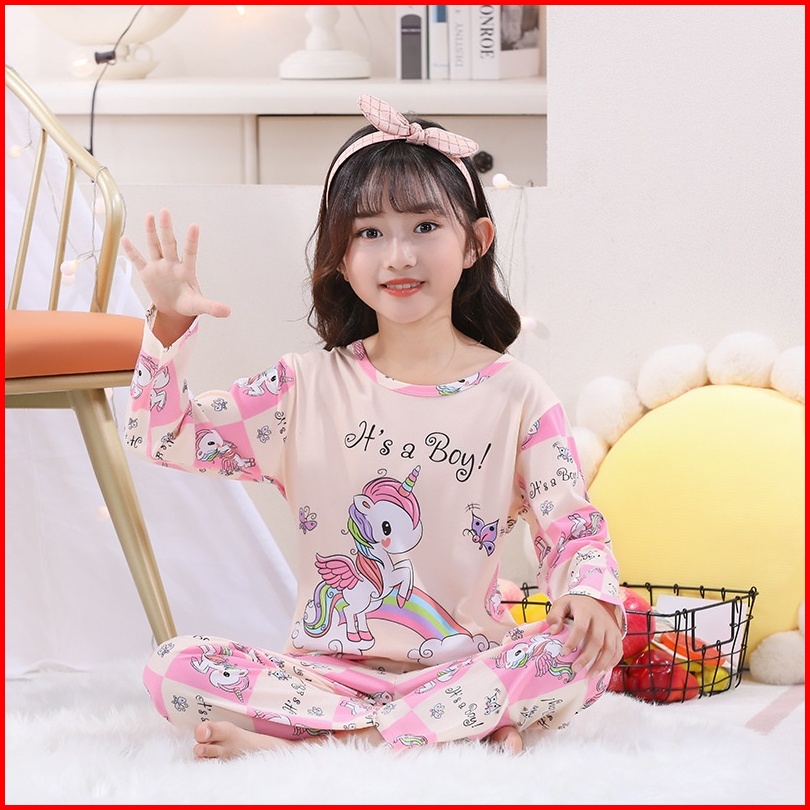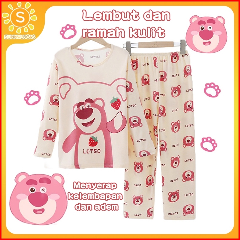 Sunny.lucas Setelan Baju Tidur Lengan Panjang Untuk Anak Perempuan Laki Laki Piyama Anak Print Kartun Piama Anak Set Baj