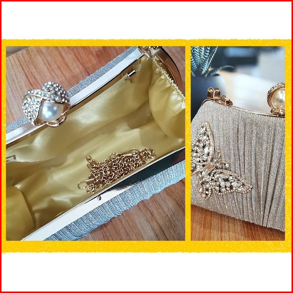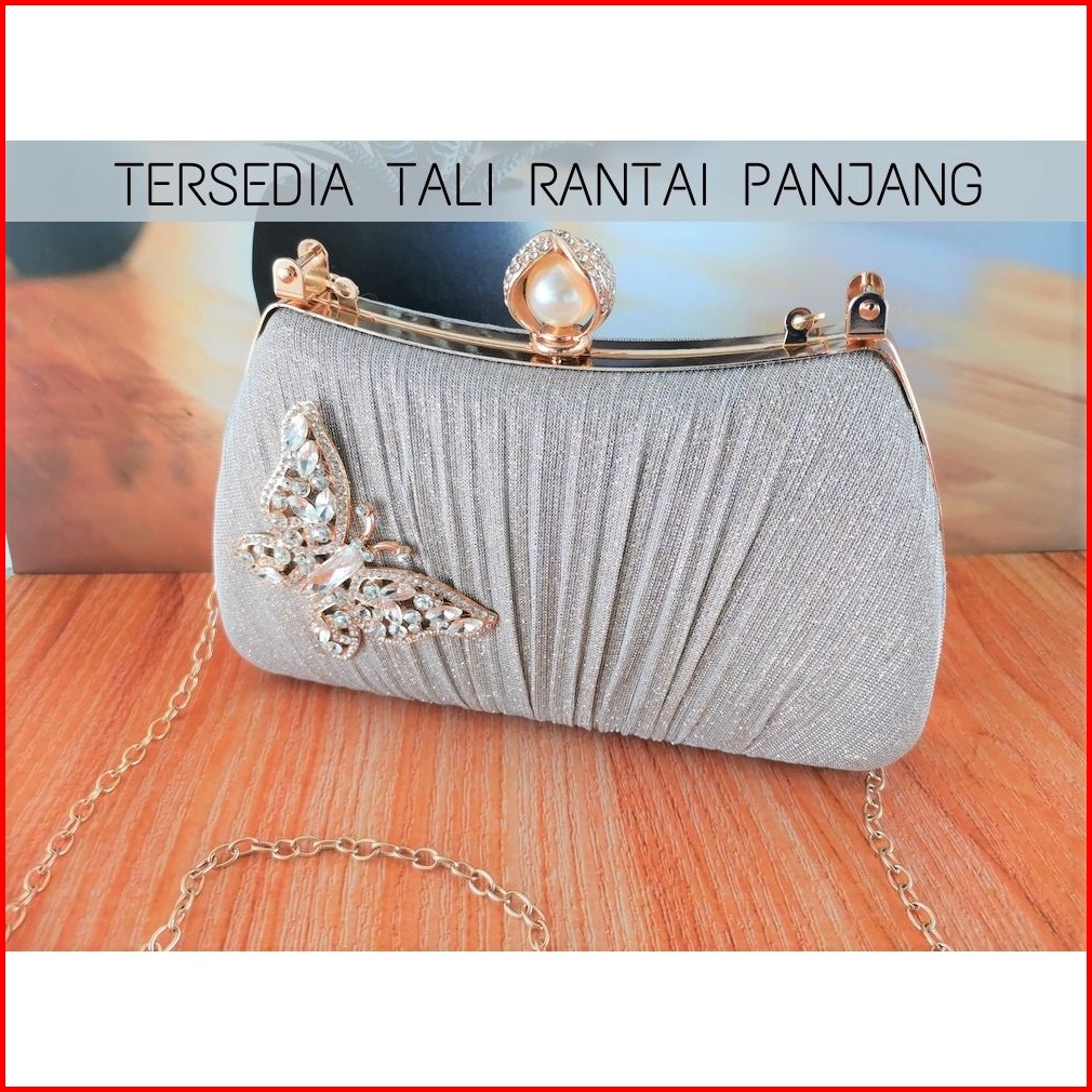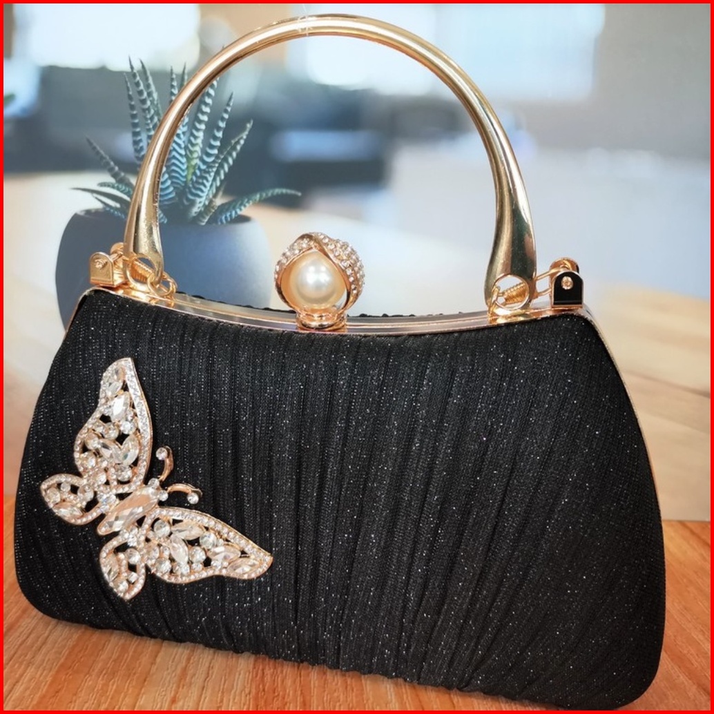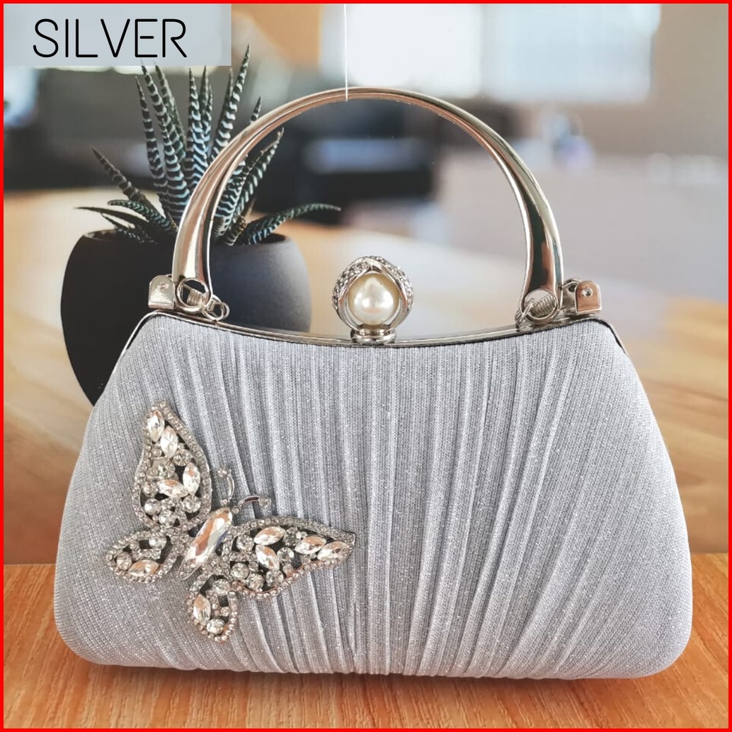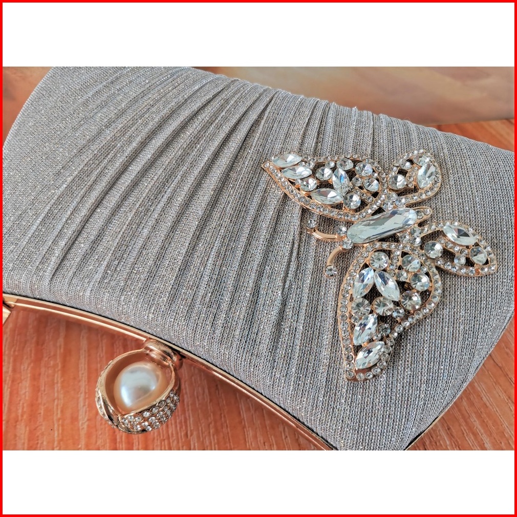 Tas Pesta Import Kondangan Wanita Kristal Glitter Mewah Murah Kupu Kupu Swarovski 7088210-11 Ava