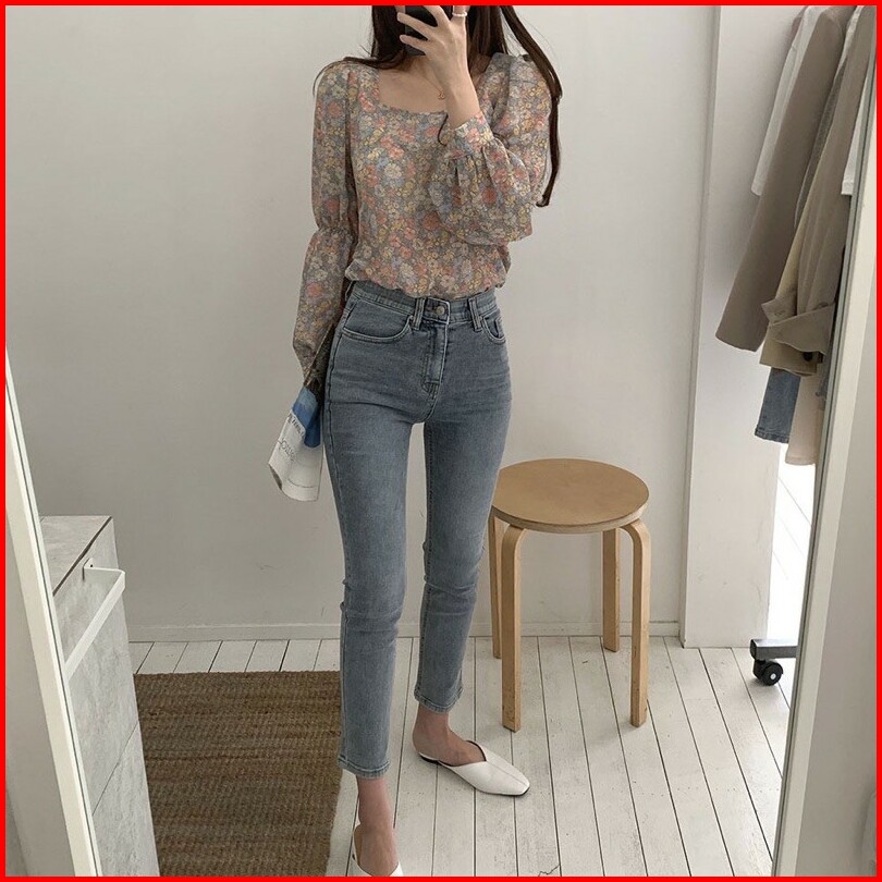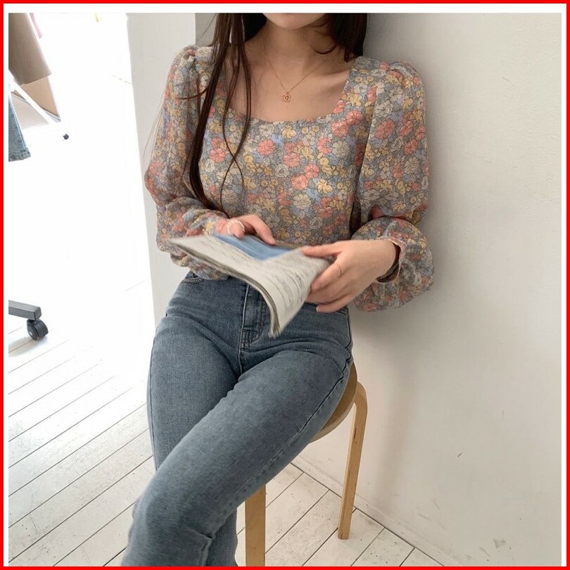 Bella Blouse Bunga Floral Wanita Lengan Panjang Puff Sleeve Hijab Friendly Casual