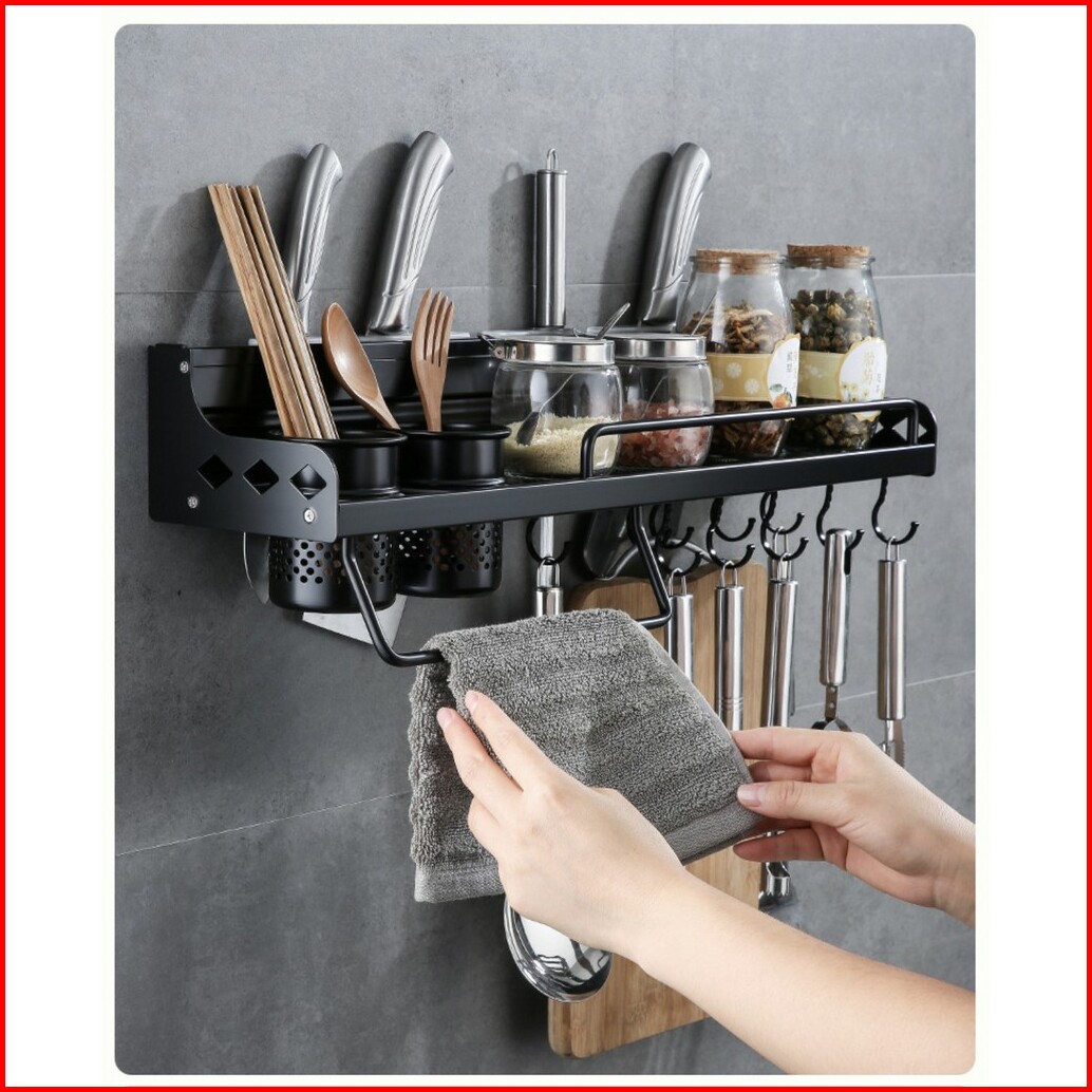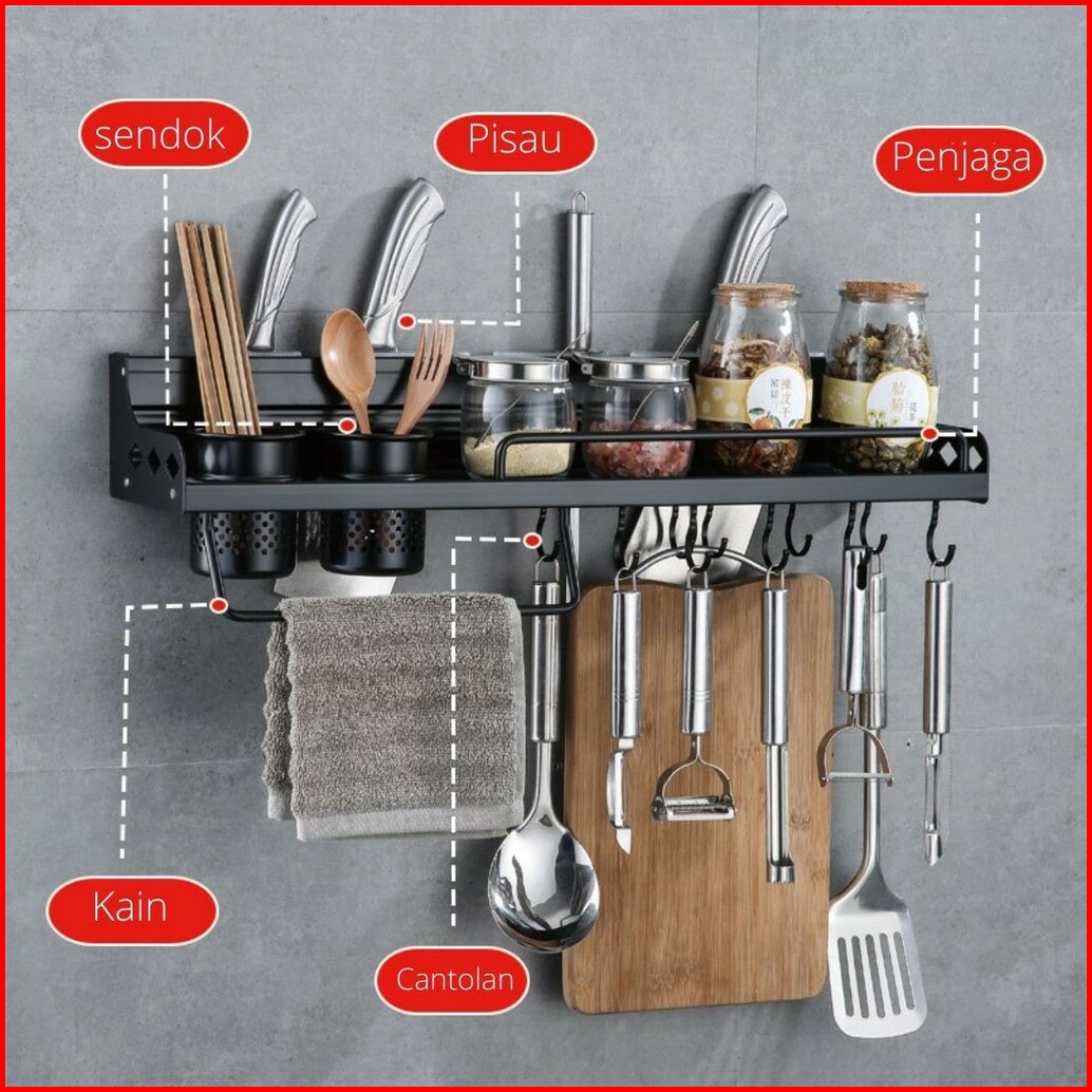 Zenrak Dapur Bumbu Lengkap Gantungan Pisau Sumpit Sendok Garpu Kain Lap Talenan Tahan Berat Kokoh