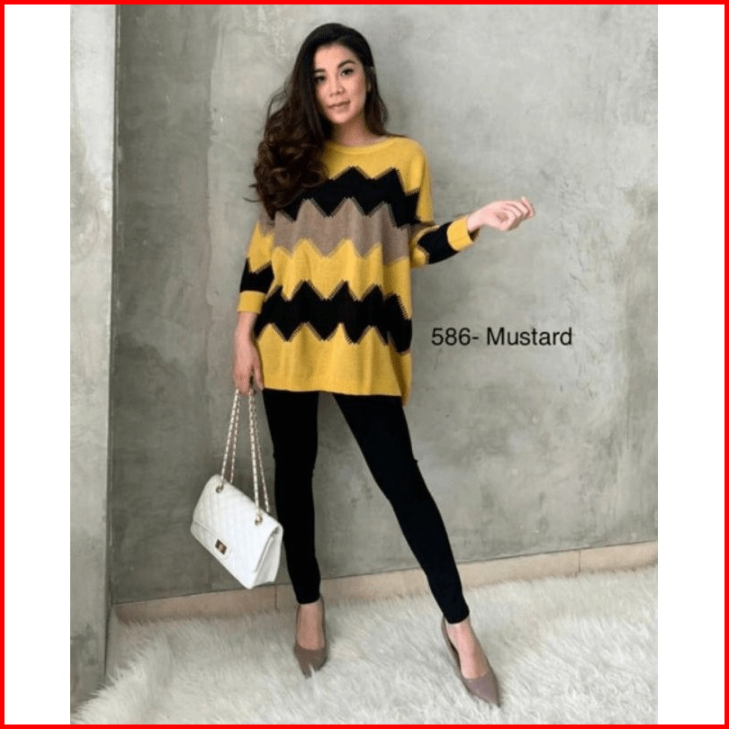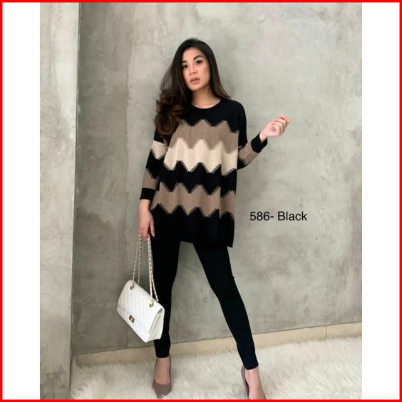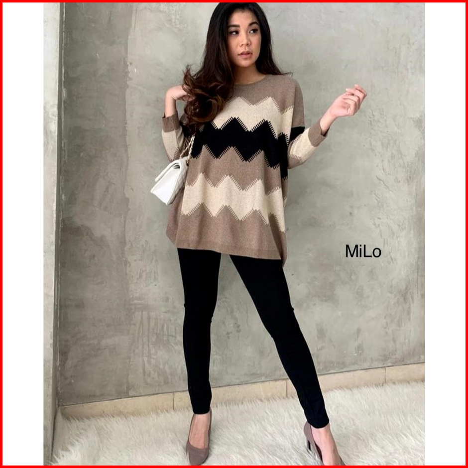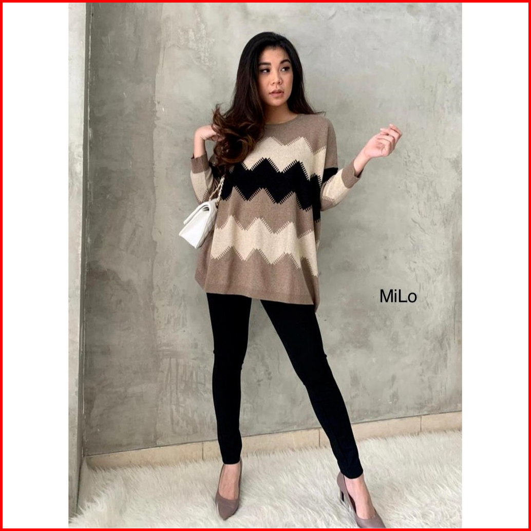 Elzaco Meghan Knit Rajut Oversize - Baju Atasan Wanita Bahan Rajut Halus Premium Tebal Motif Zigzag - Sweater Terbaru