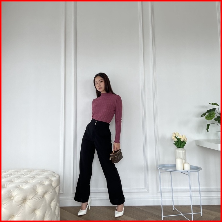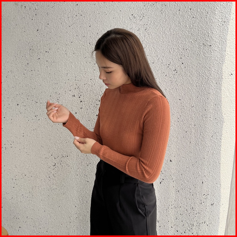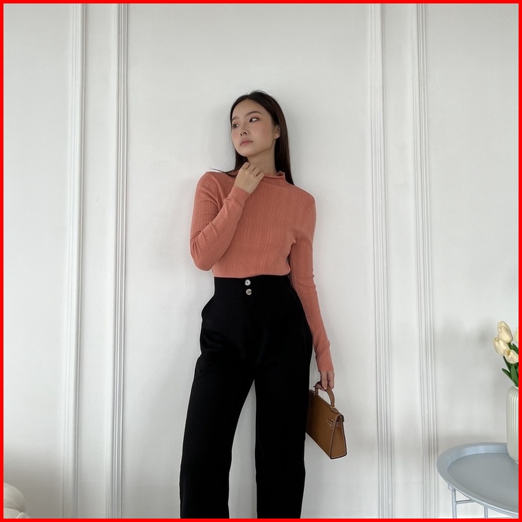 Kiyorawears - Hae Turtleneck Top Atasan Leher Tinggi Top Knit Blouse Rajut Wanita Korean Style