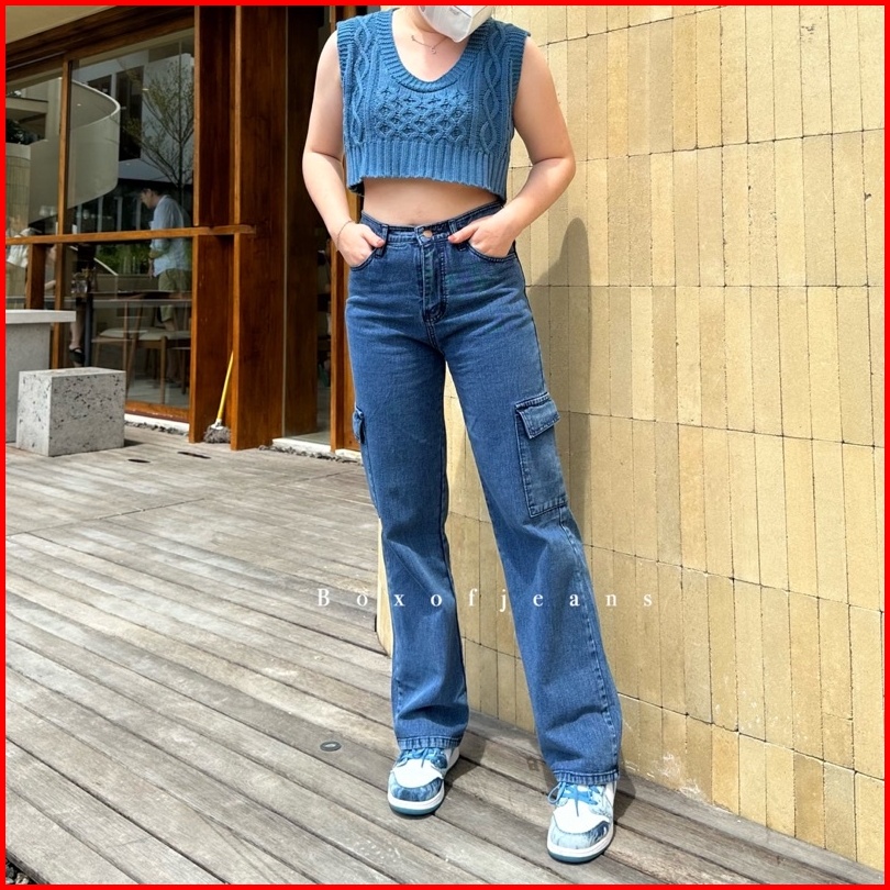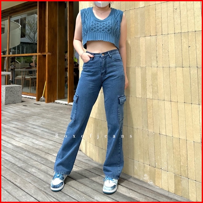 Boxofjeans - Cargo Hw Loose Jeans - Snow Blue