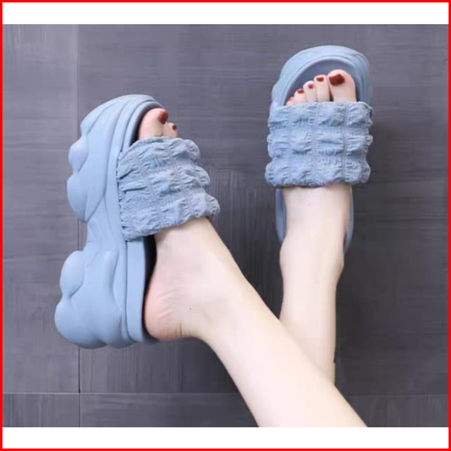 Dm-shopp Wedges Wanita Hak 7 Cm Tebal Slip On Kokop Kain Kerut Wedges Wanita Korea Style Bm 521