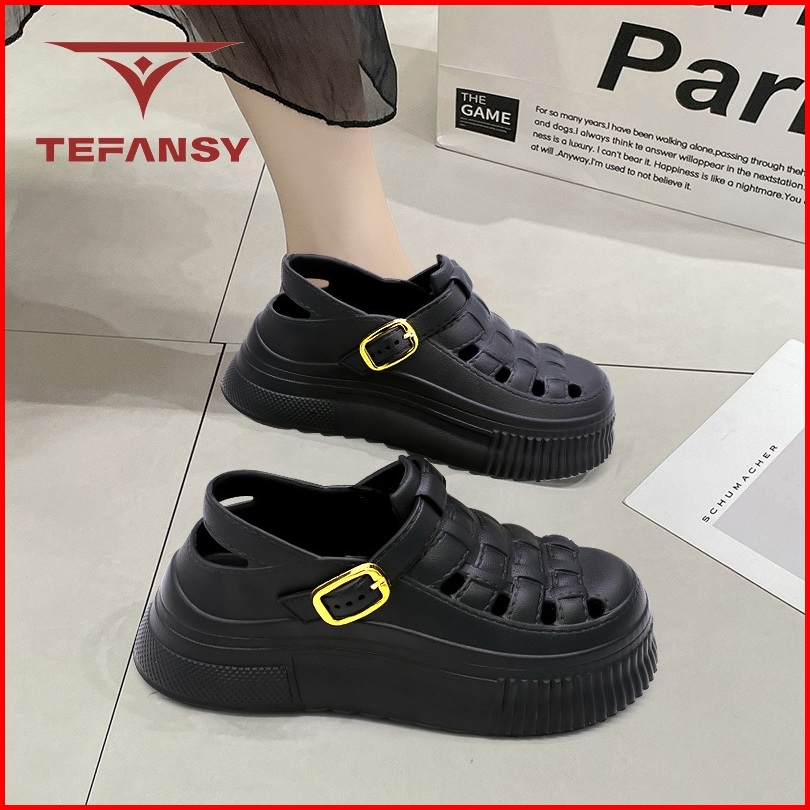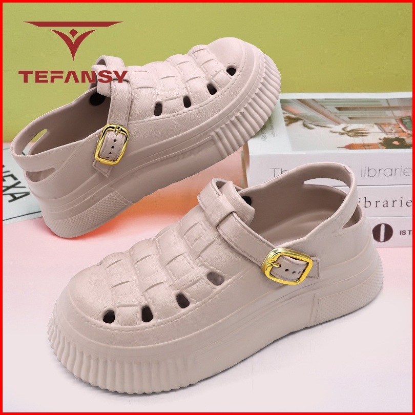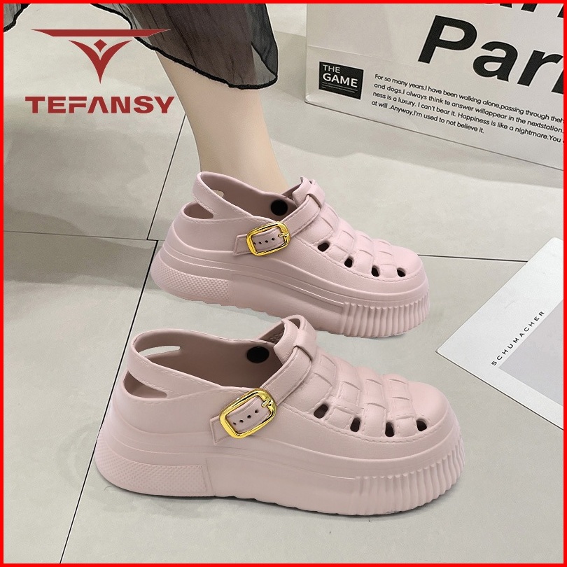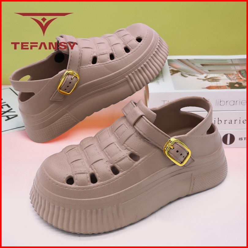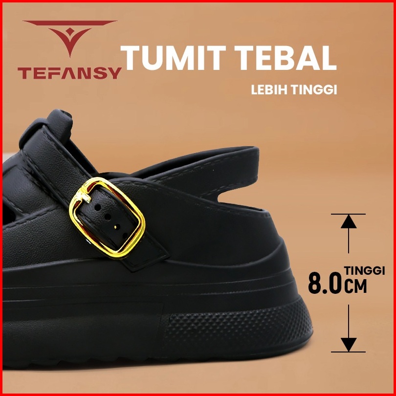 Tefansy Sandal Karet Jelly Wanita Wedges Tebal Bahan Elastis Empuk Tali Belakang Motif Double Strap